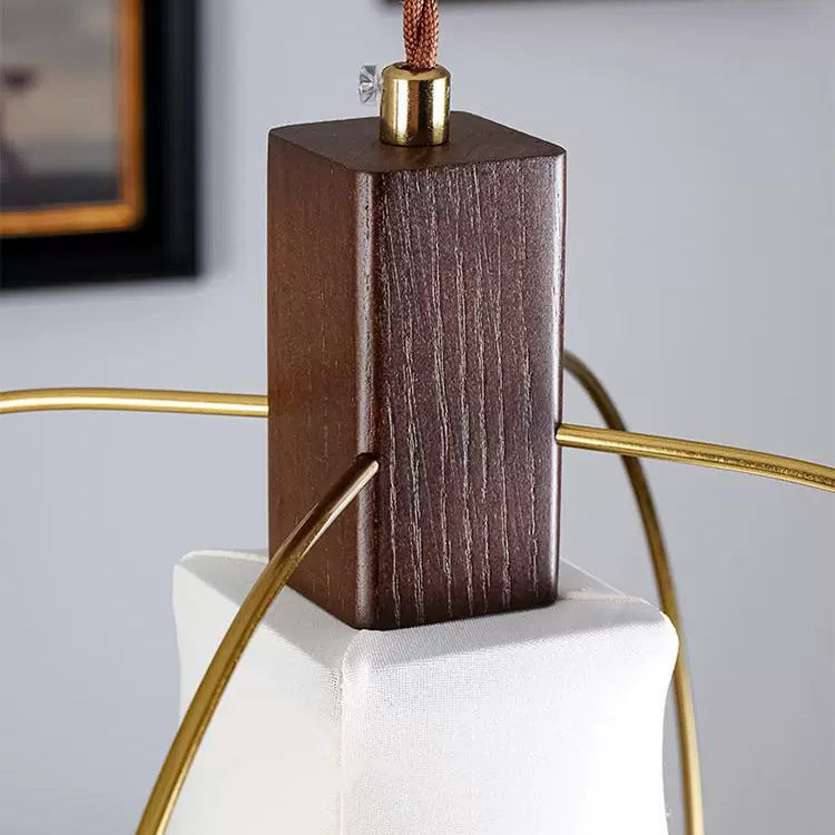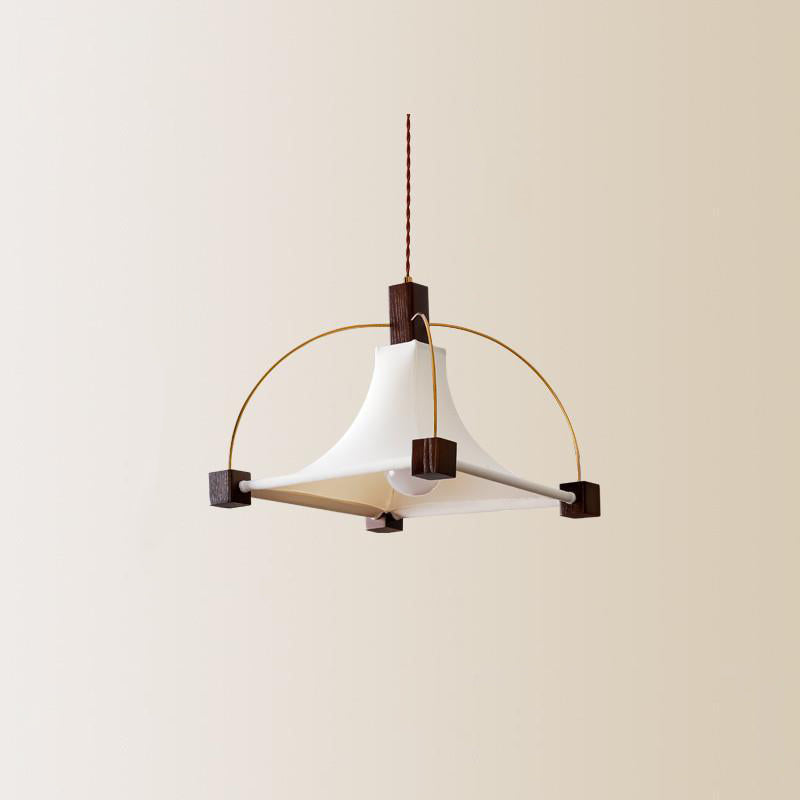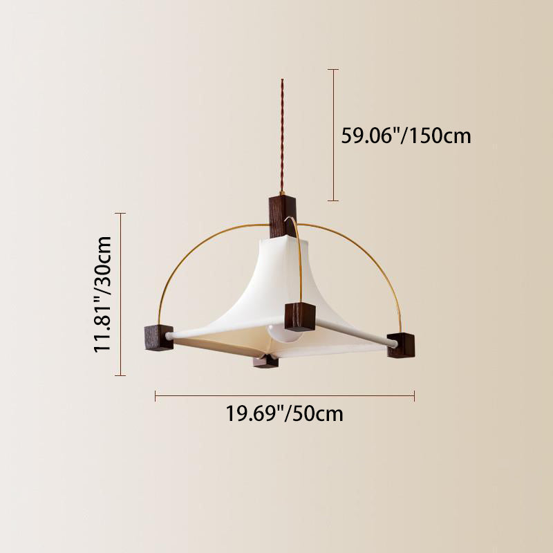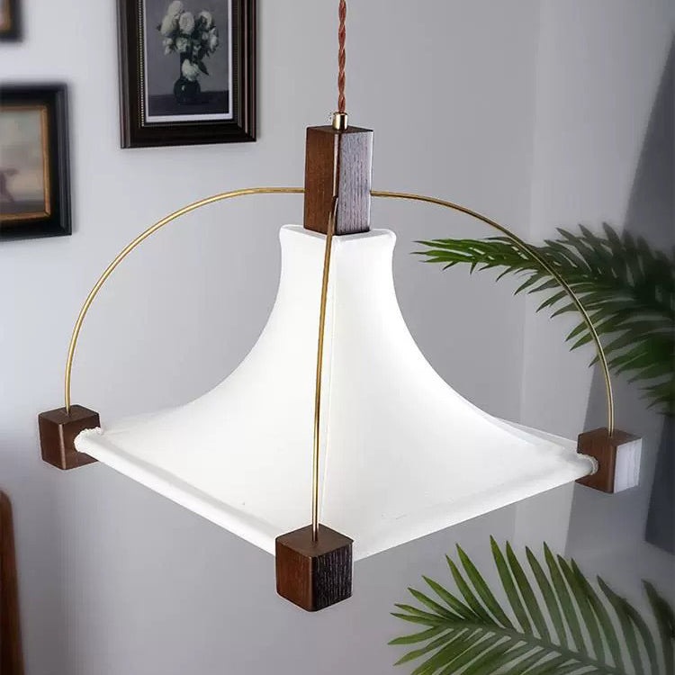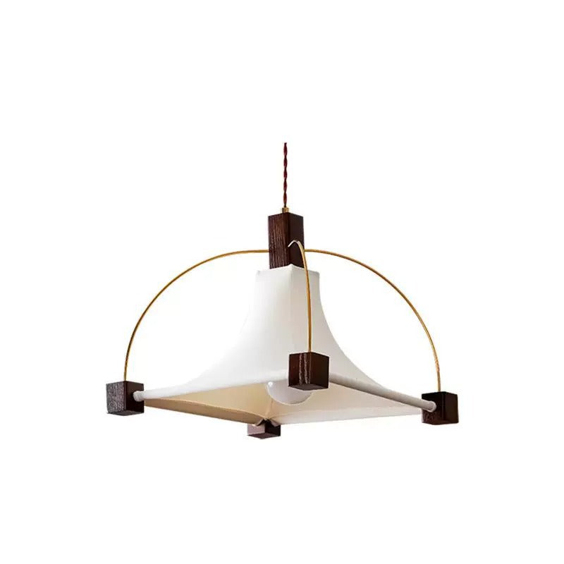 Modern Mid-Century Pyramid Ash Wood Alloy Fabric 1-Light Pendant Light For Bedroom