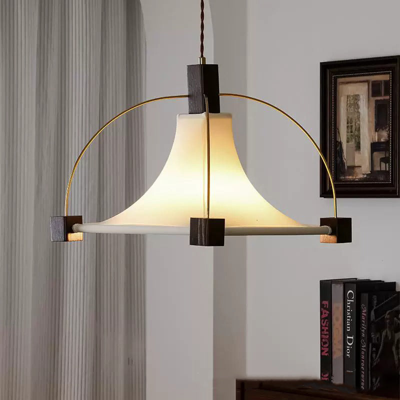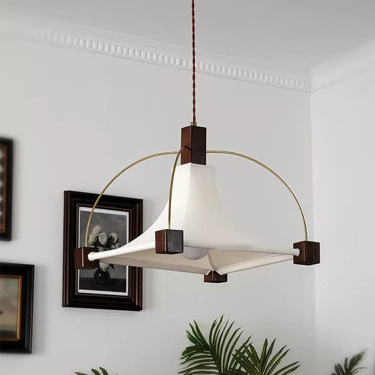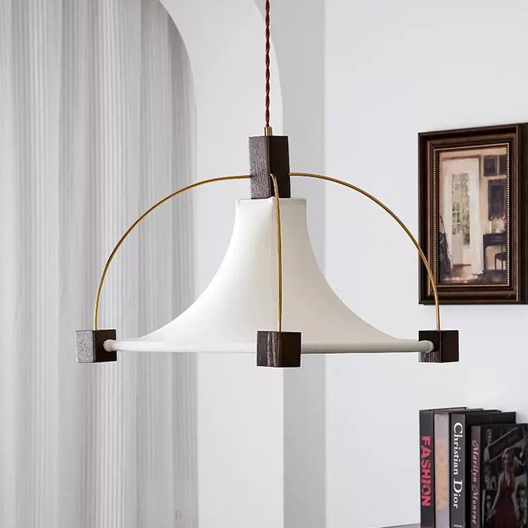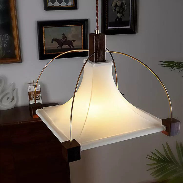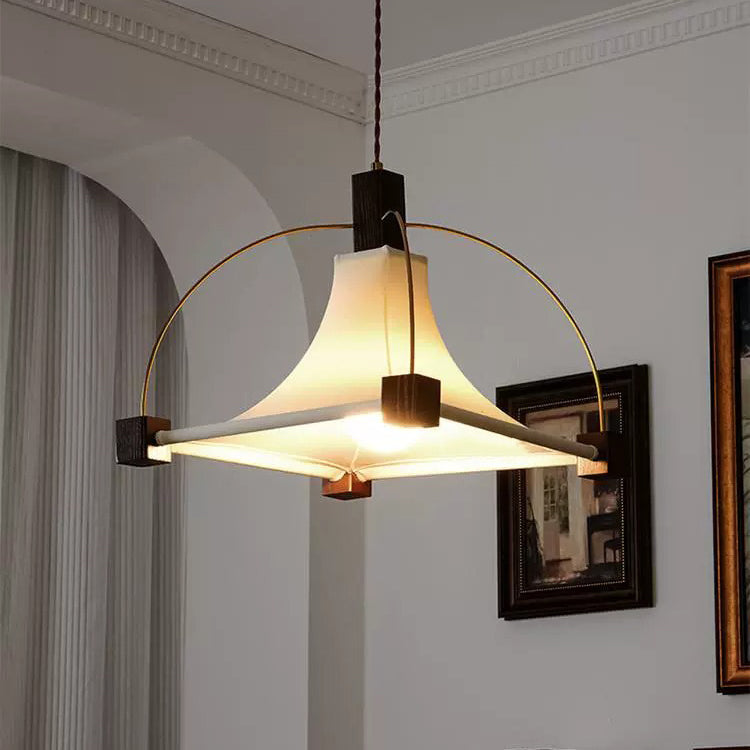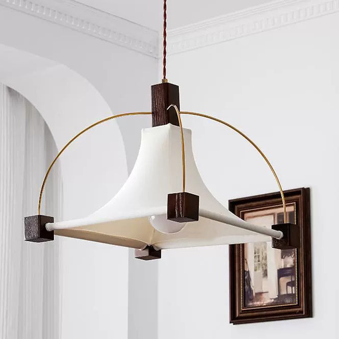 Modern Mid-Century Pyramid Ash Wood Alloy Fabric 1-Light Pendant Light For Bedroom