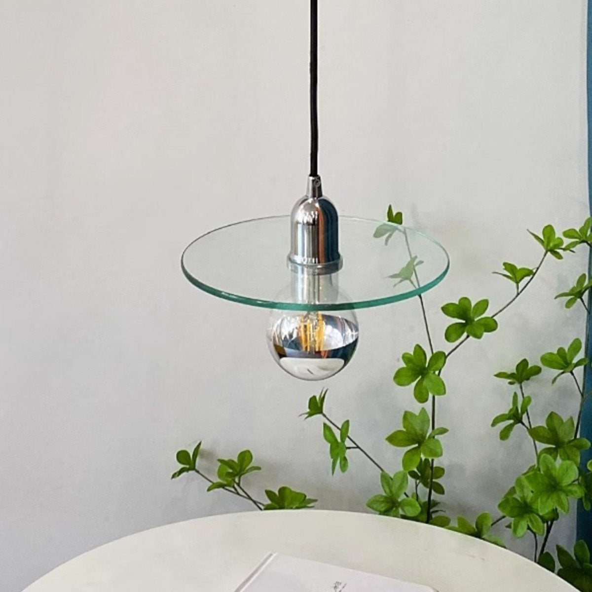 Modern Mid-Century Round Disc Iron Glass 1-Light Pendant Light For Living Room