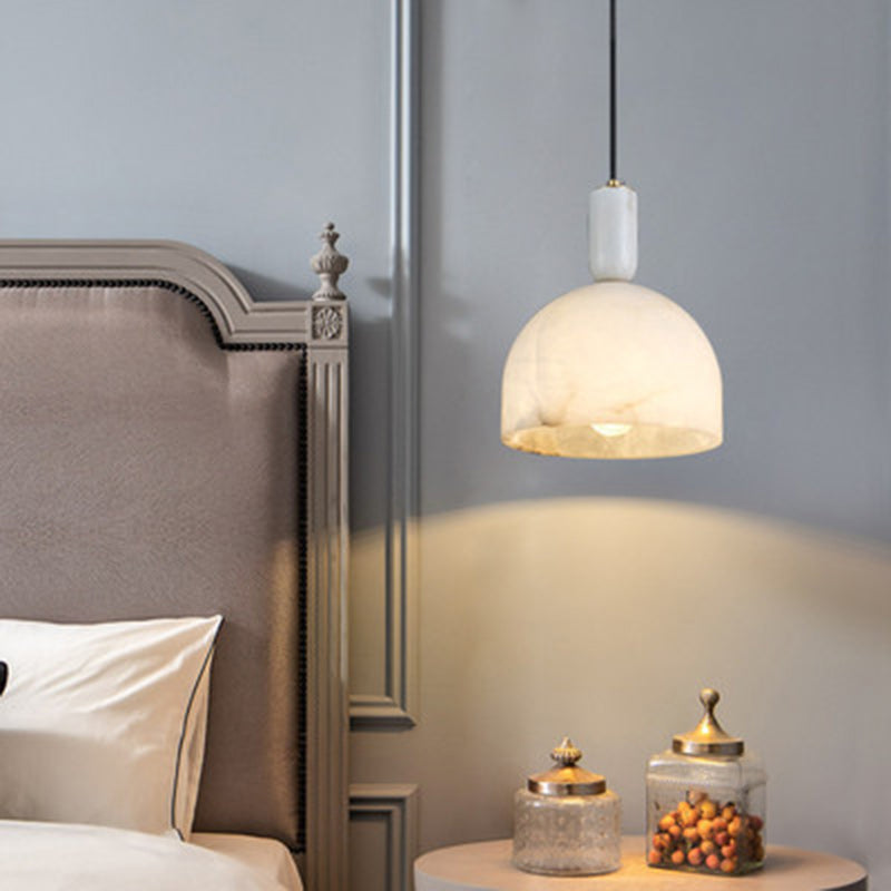 Modern Mid-Century Round Semi-circle Oval Copper Marble 1-Light Pendant Light For Bedroom