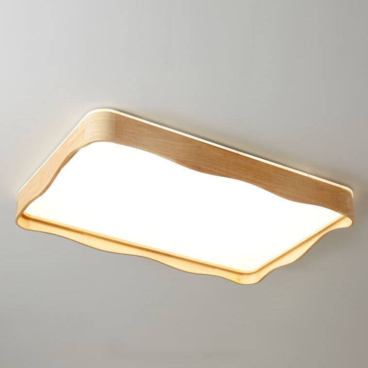 Modern Minimal Wave Rectangular Rubberwood Acrylic LED Flush Mount Lighting