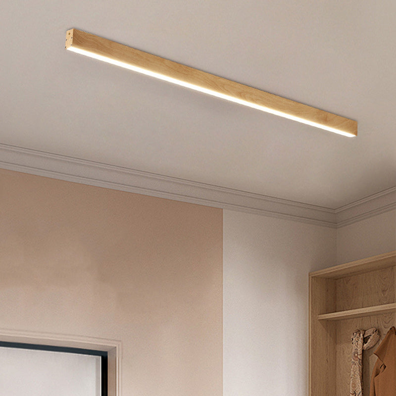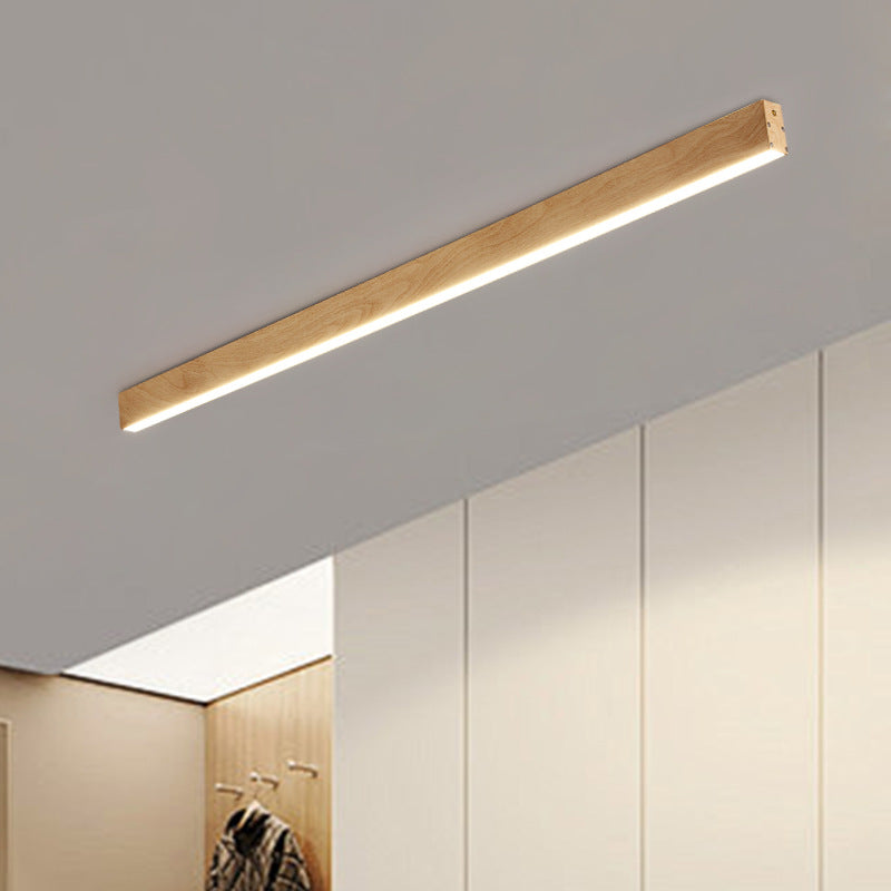 This modern minimalist LED flush mount long bar ceiling light is designed for hallways, balconies, and entrances. Made from aluminum and acrylic, it offers soft, eye-protecting light with wide diffusion, creating a warm and inviting atmosphere. Available in natural wood and walnut finishes, it’s perfect for contemporary spaces seeking both functionality and style. Ideal for those looking for efficient, glare-free lighting.