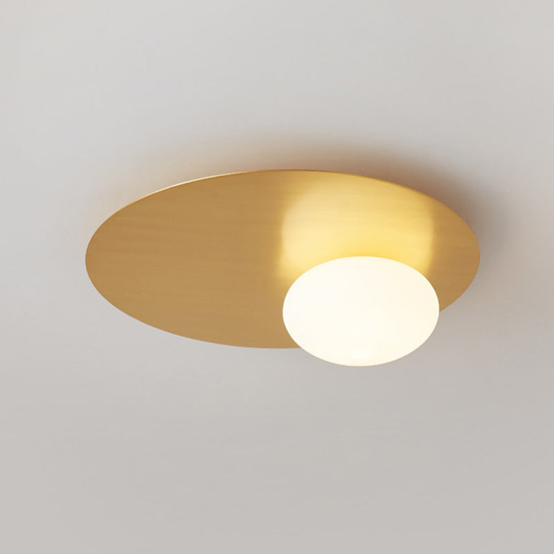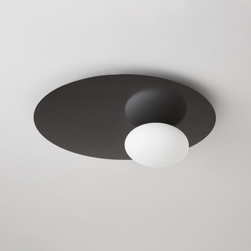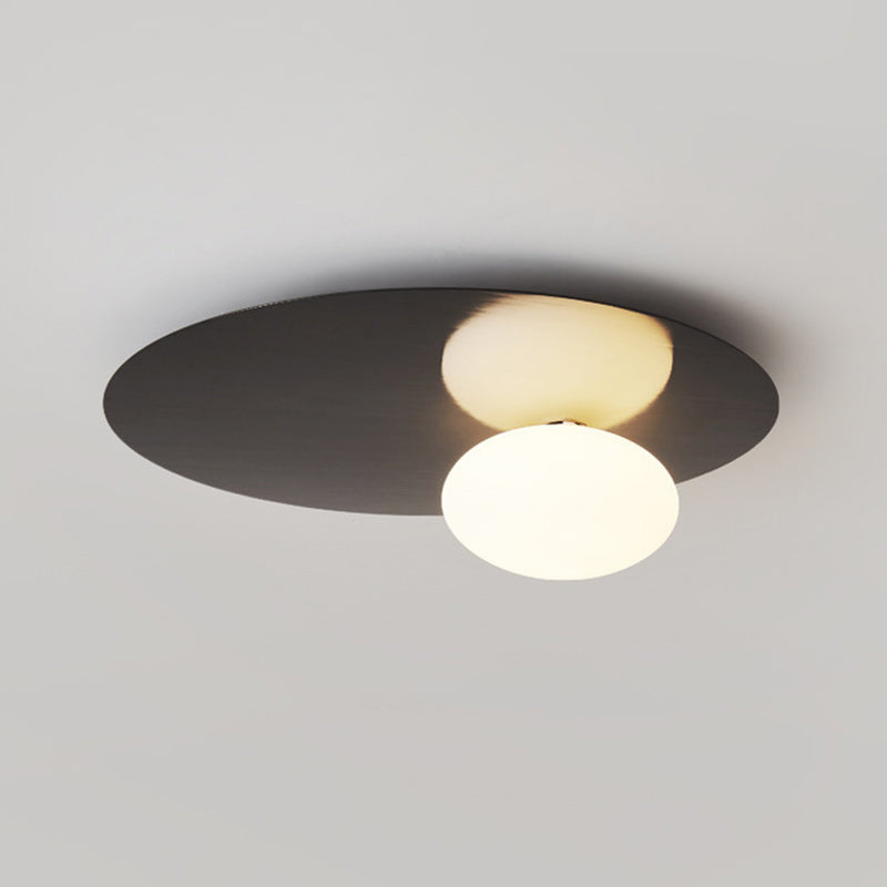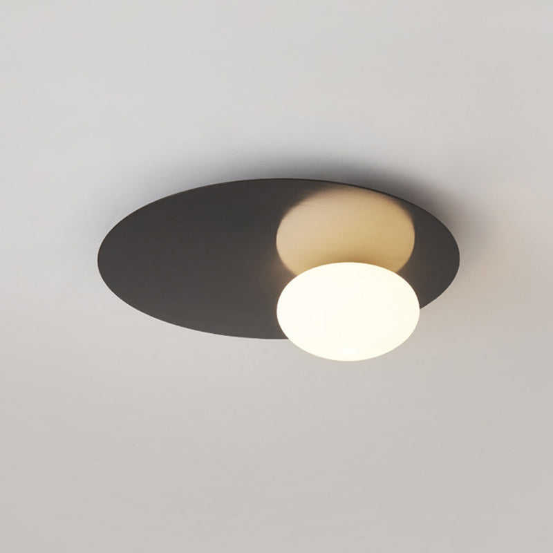 Modern Minimalist Art Deco Round Iron Glass 1-Light Flush Mount Ceiling Light For Bedroom