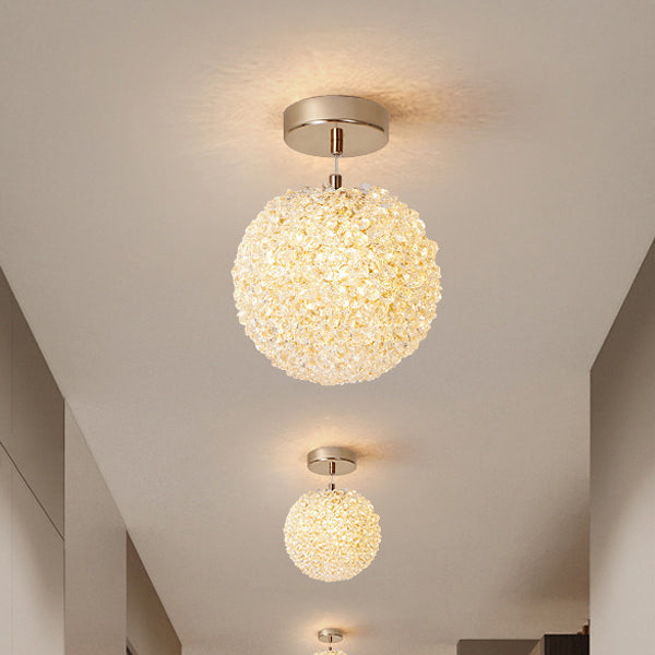 Modern Minimalist Ball Circular Crystal Iron 1-Light Pendant Light For Hallway