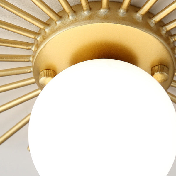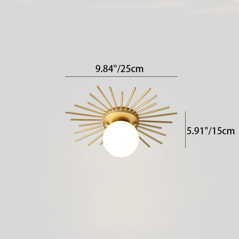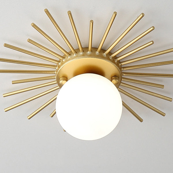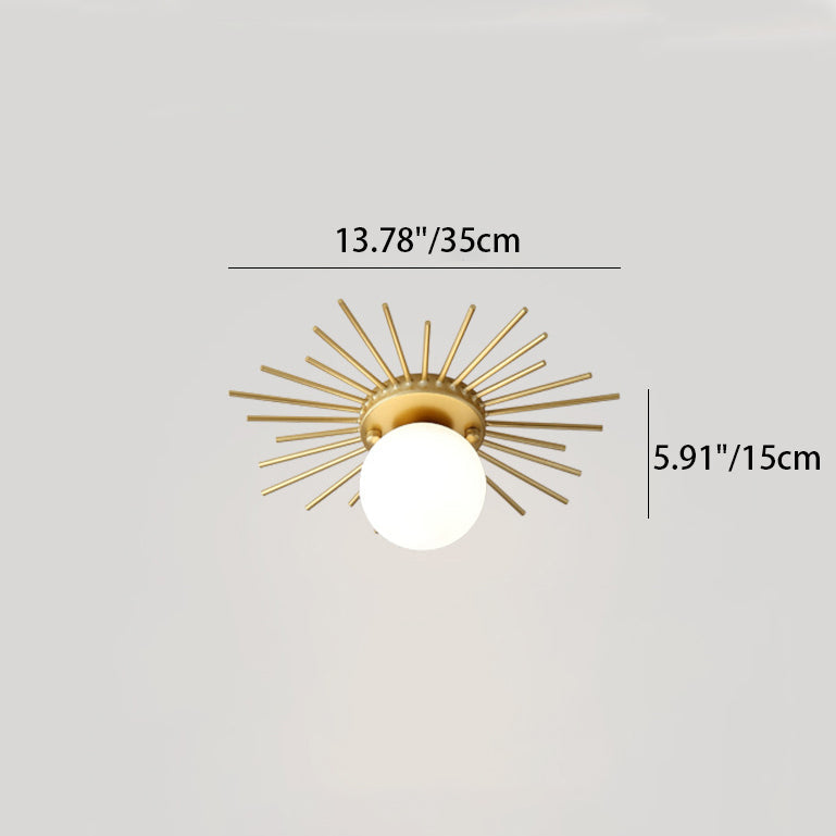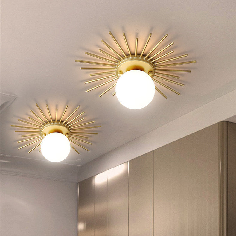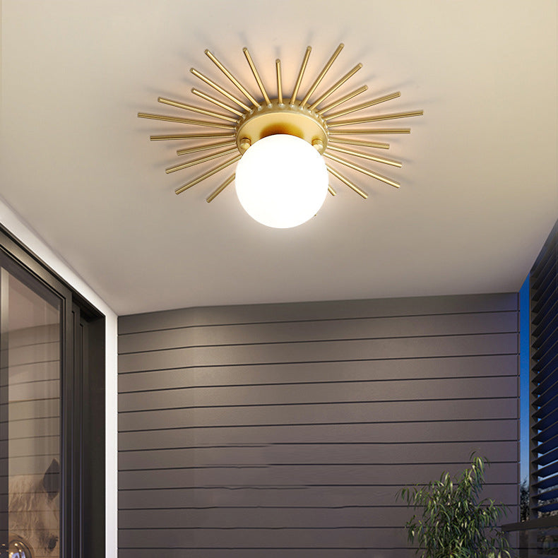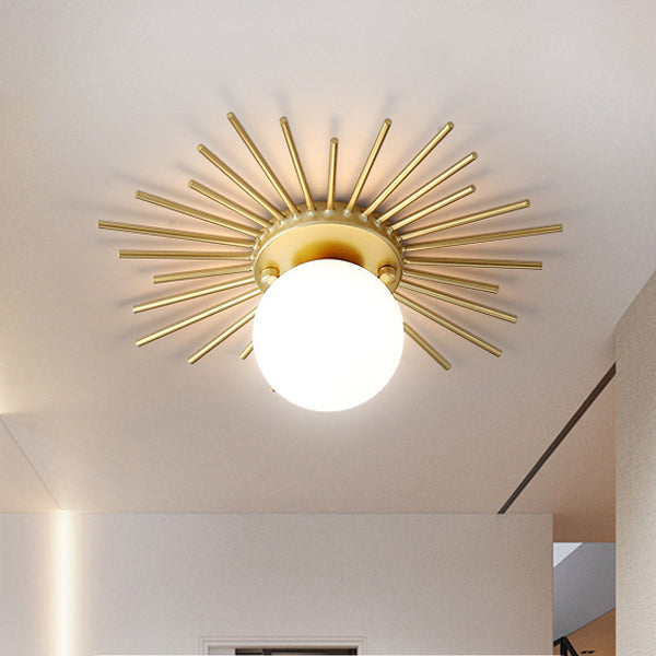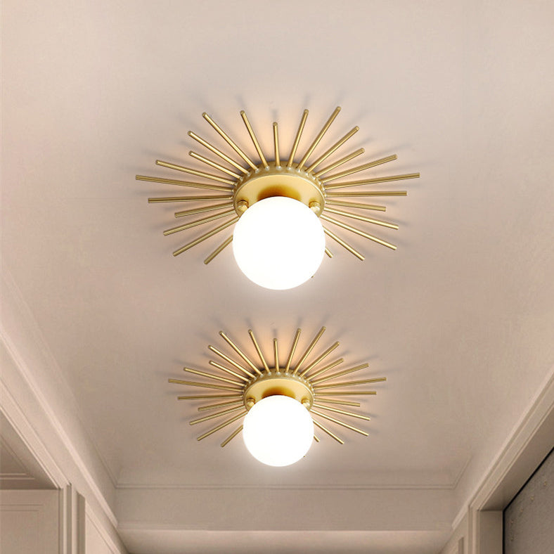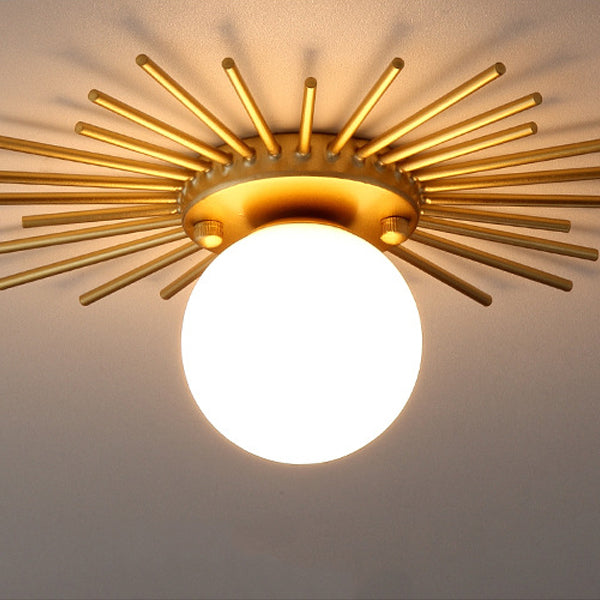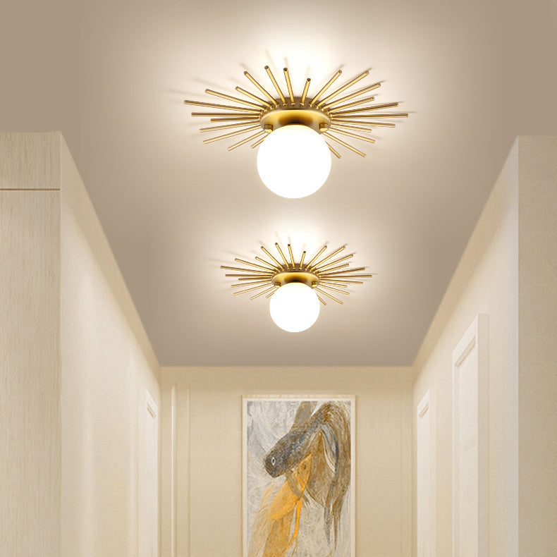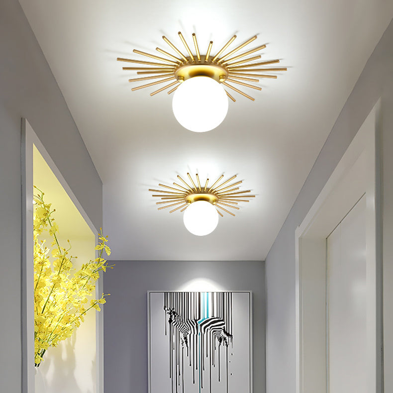 Modern Minimalist Branch Globe Sun Shape Iron Frame Glass Shade 1-Light Flush Mount Ceiling Light For Hallway