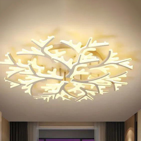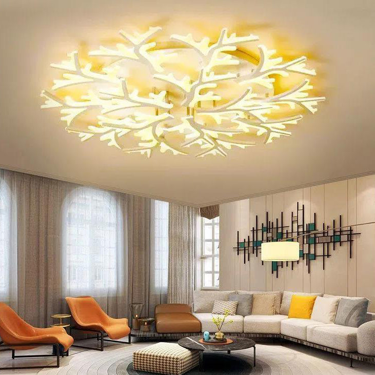 Modern Minimalist Branch Tree Shape Hardware PMMA Shade LED Flush Mount Ceiling Light For Living Room