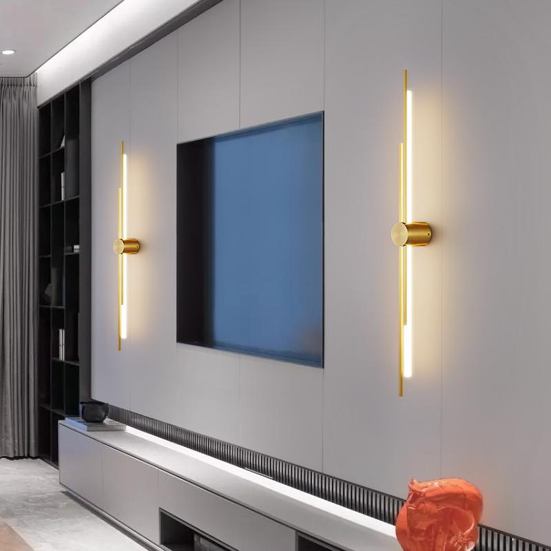 Crafted from high-end brass and acrylic, this modern linear LED wall sconce delivers uniform light in a sleek gold or black finish. Perfect for bedroom headboards, living room accent walls, or TV background lighting, it brings a sophisticated and minimalist touch to any space.