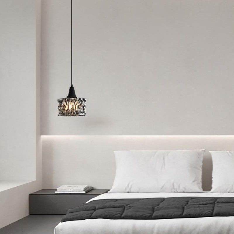 Modern Minimalist Brass & Glass Cylinder 1-Light Pendant Light For Bedroom, Living Room, Dining Room