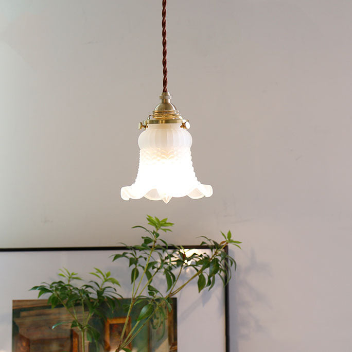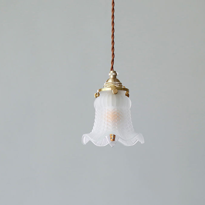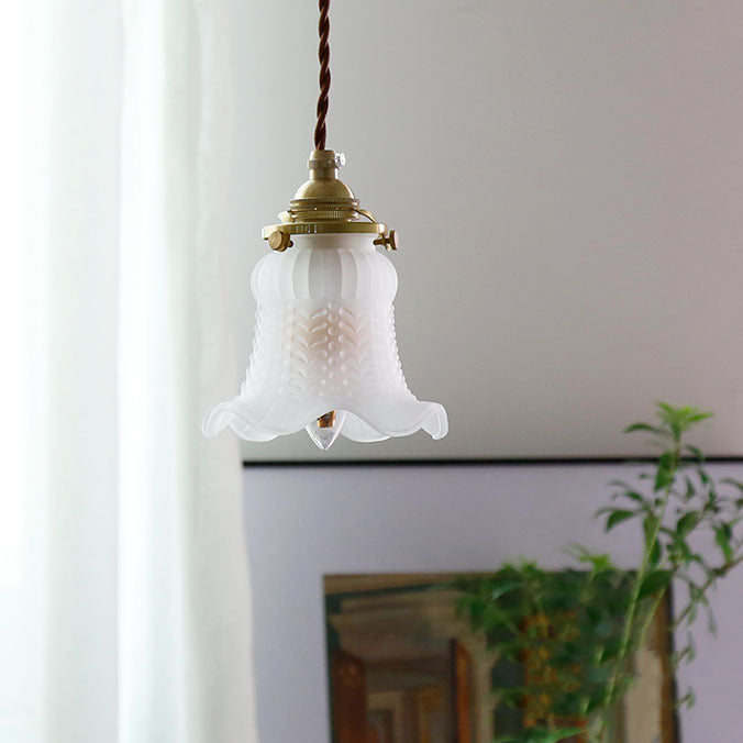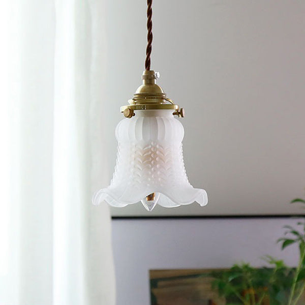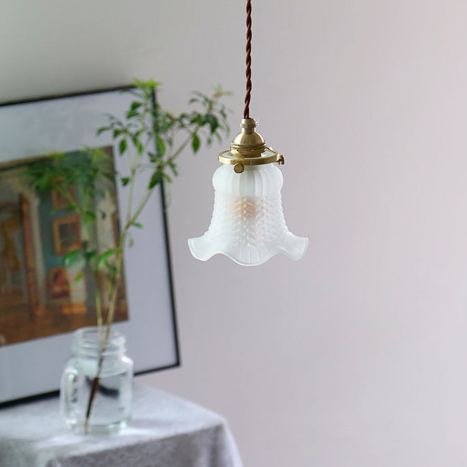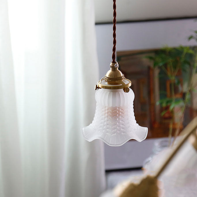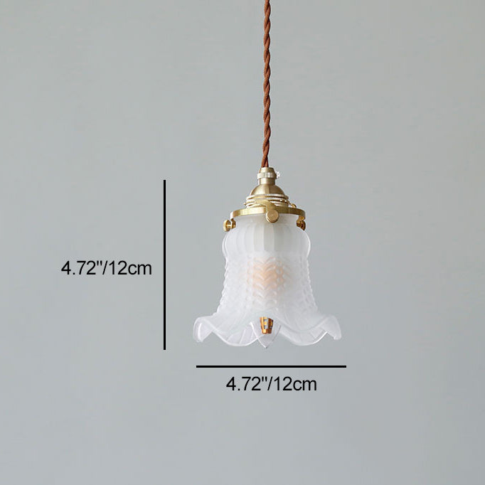 Modern Minimalist Brass & Glass Flower 1-Light Pendant Light For Bedroom & Living Room