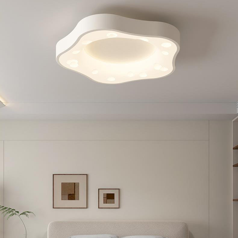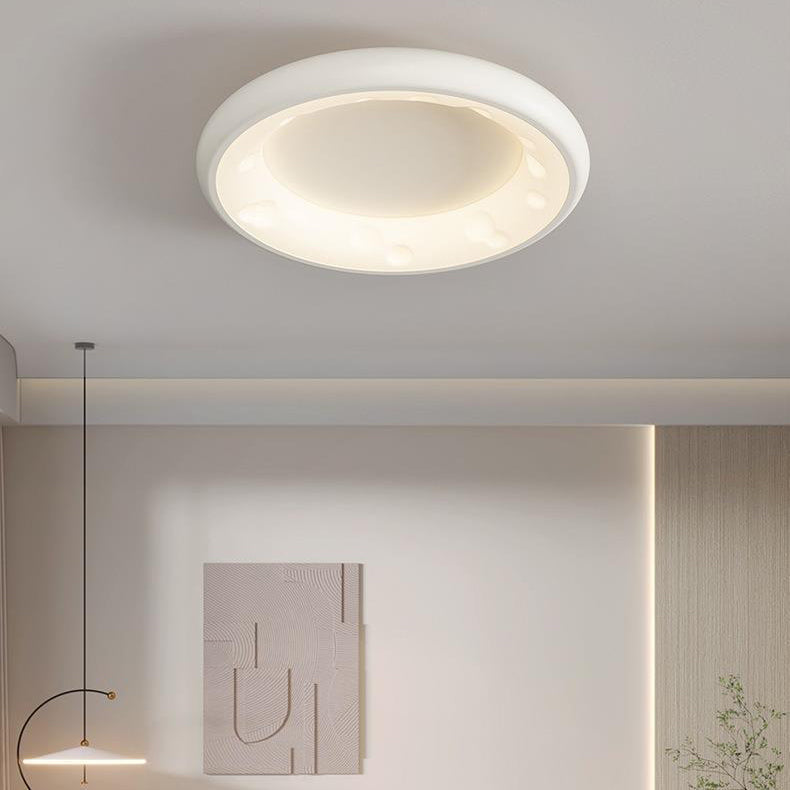 Modern Minimalist Cheese Cream Acrylic Iron LED Flush Mount Ceiling Light For Bedroom