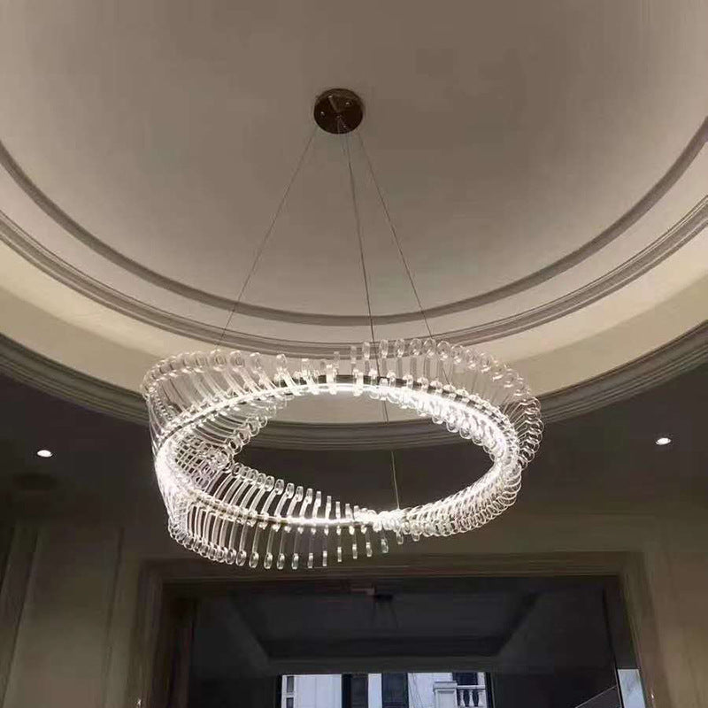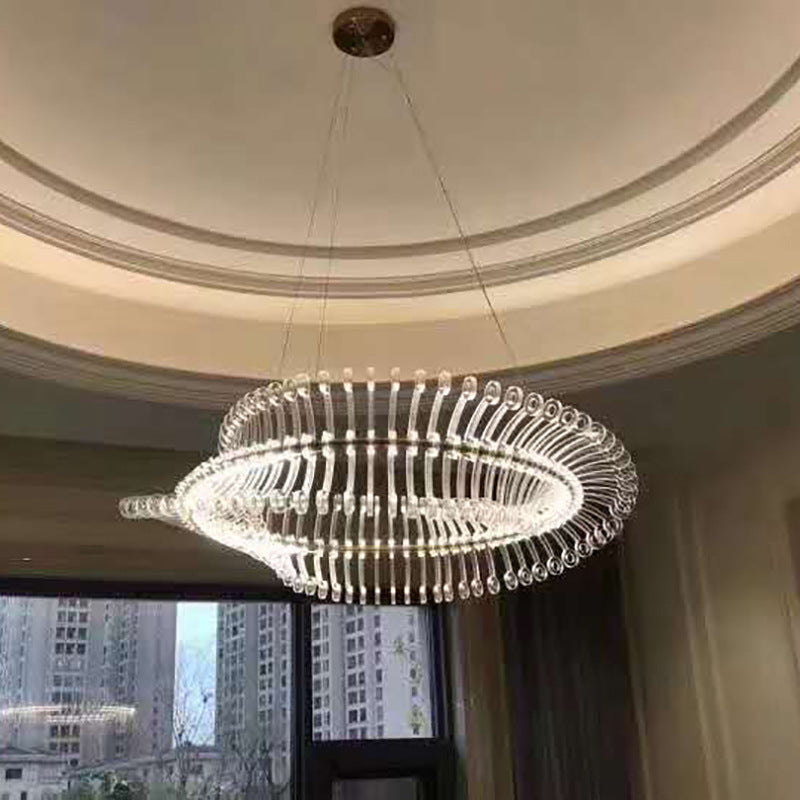 Modern Minimalist Circular Fishbone Shape Iron Acrylic LED Chandelier For Living Room