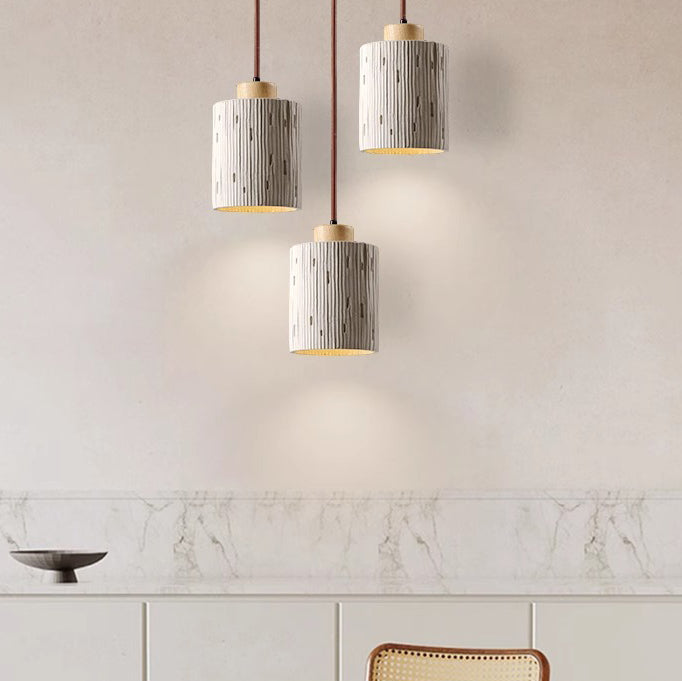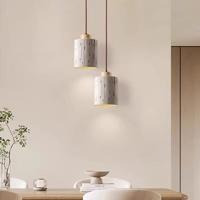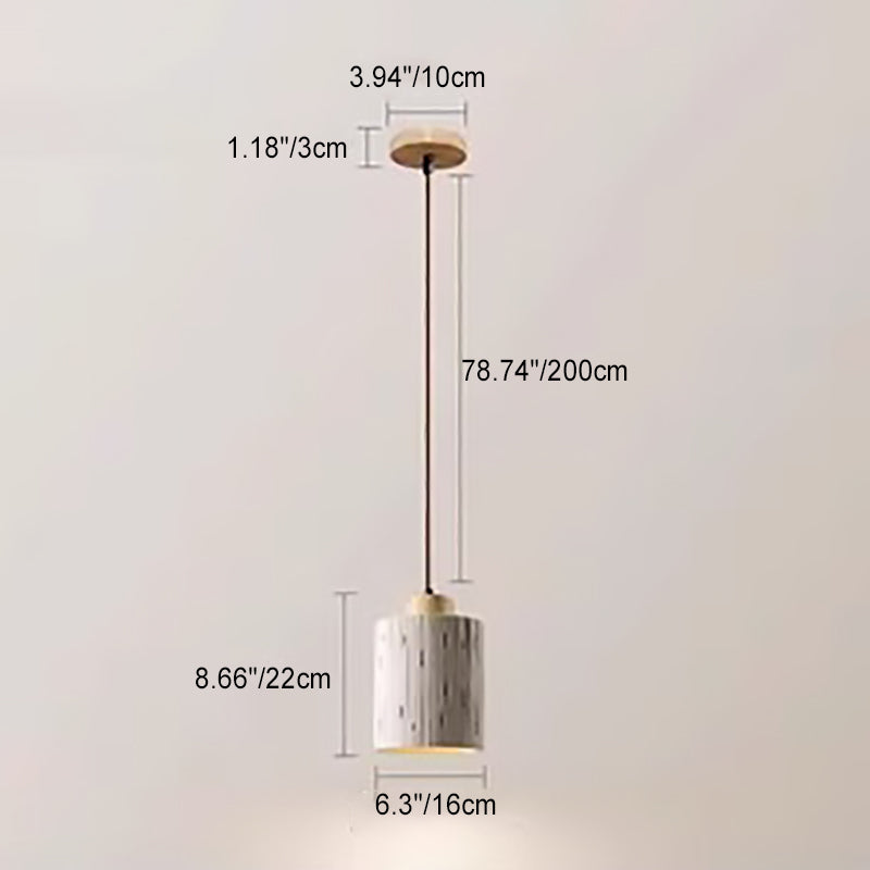 Modern Minimalist Column Cement Wood 1-Light Pendant Light For Living Room