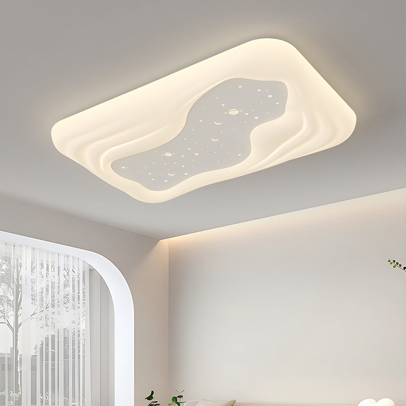 Modern Minimalist Cream Rectangle Round Square Star PE Iron LED Flush Mount Ceiling Light For Living Room