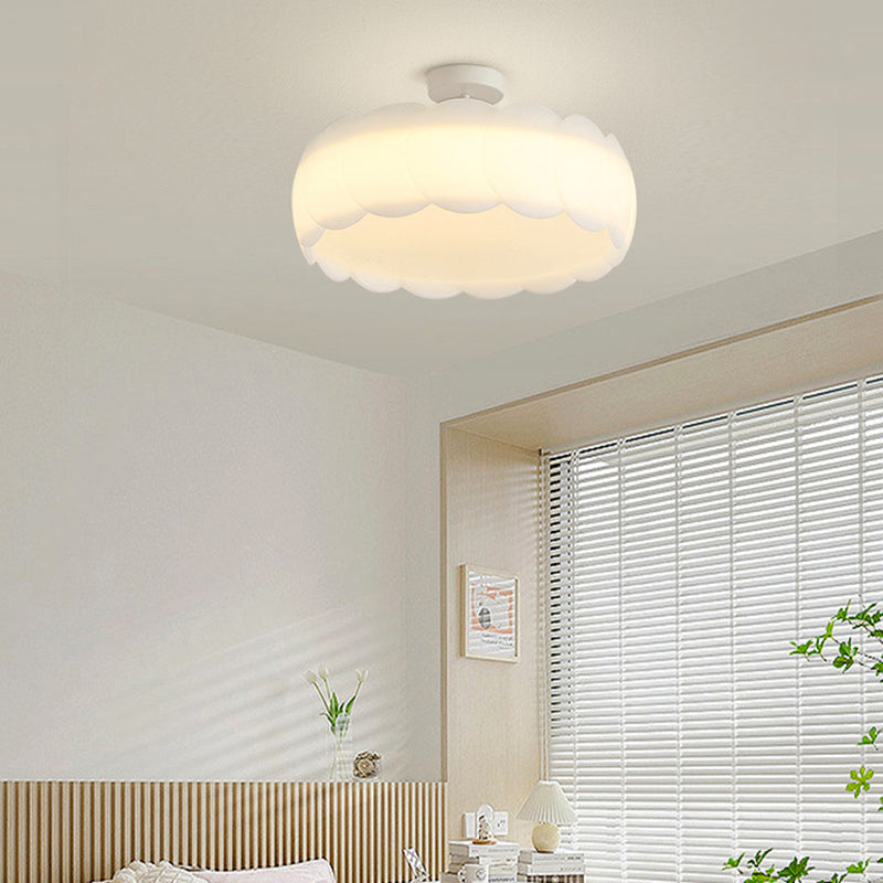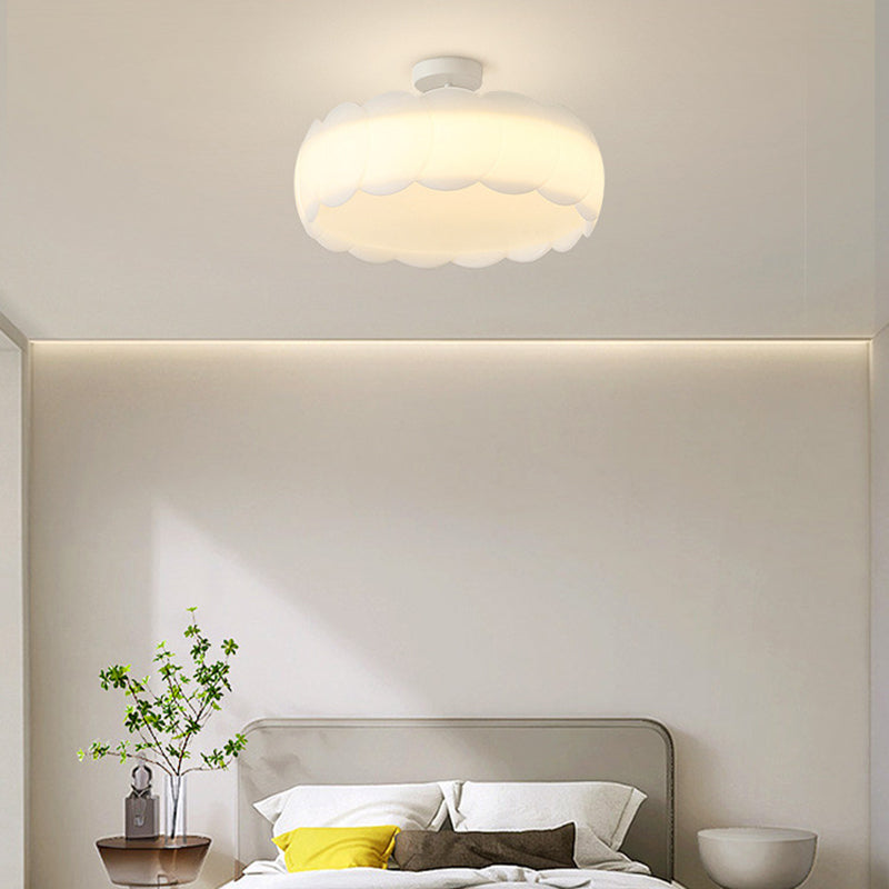 Modern Minimalist Cream Round Lace Hardware PE LED Semi-Flush Mount Ceiling Light For Bedroom