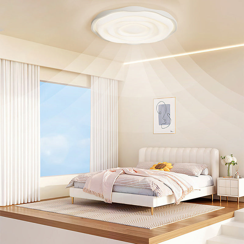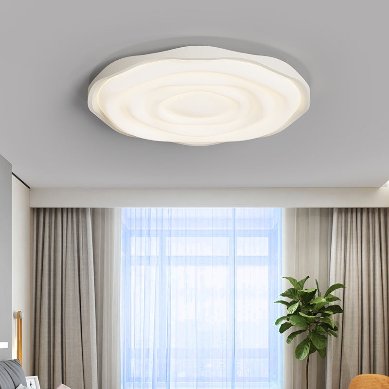 Modern Minimalist Cream-Toned Round Iron Acrylic Aluminum LED Flush Mount Ceiling Light For Bedroom