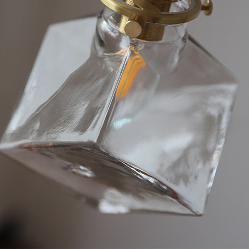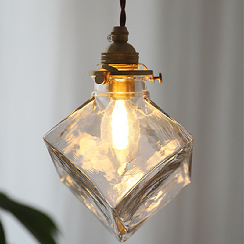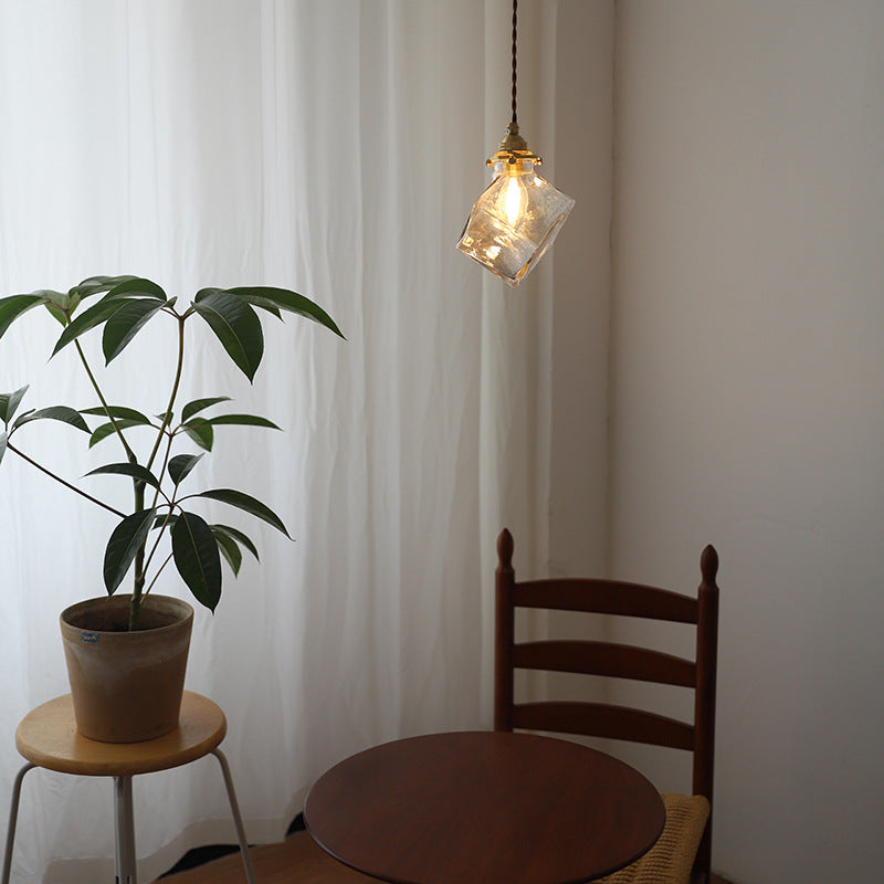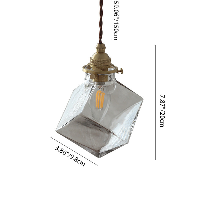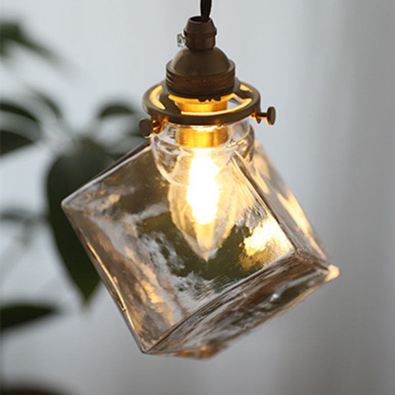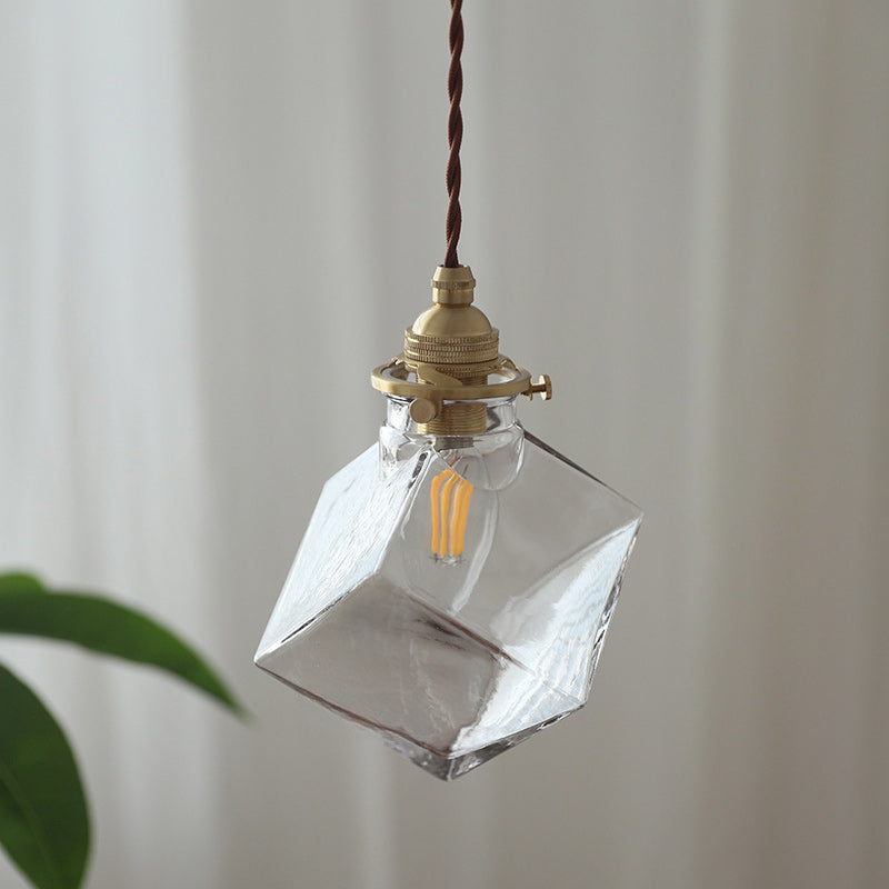 Modern Minimalist Cube Copper Glass 1-Light Pendant Light For Living Room