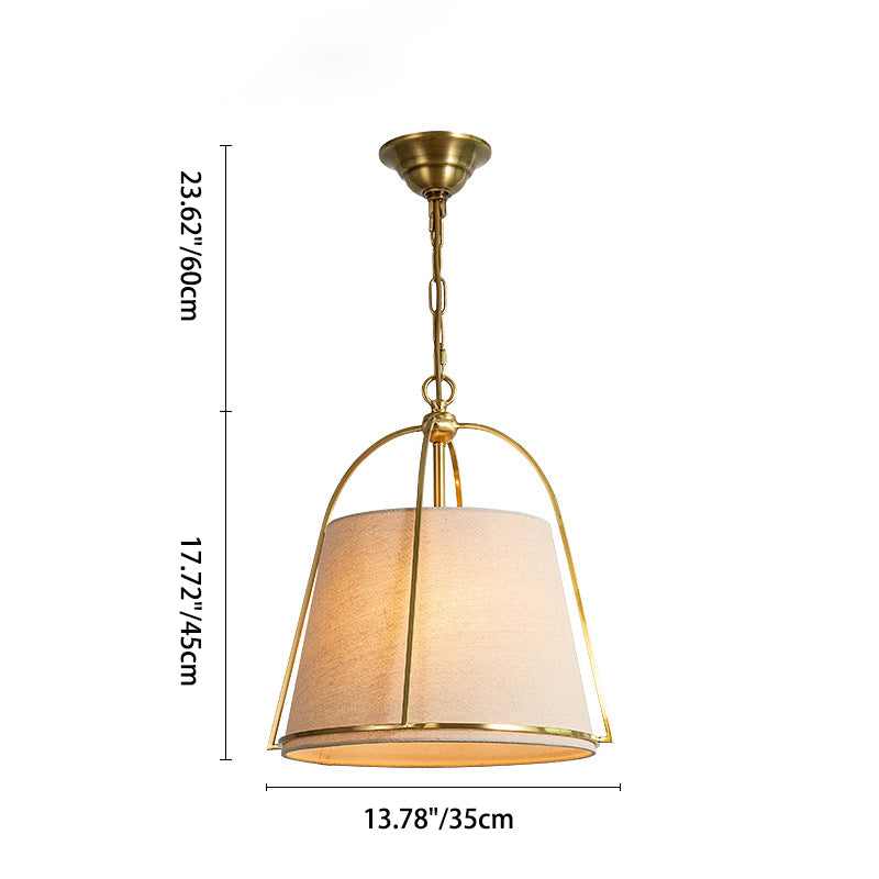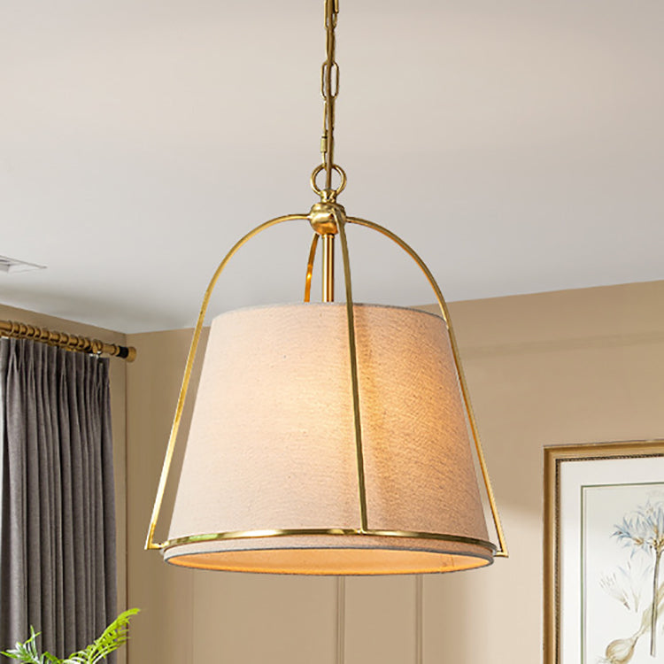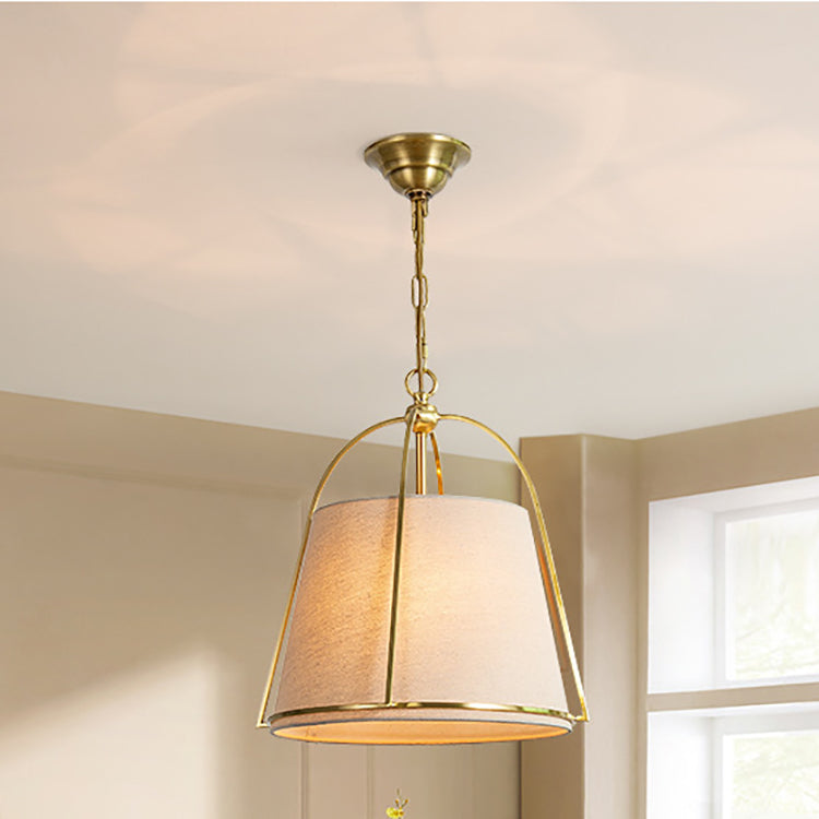 Modern Minimalist Cylinder Copper Fabric 3-Light Pendant Light For Bedroom