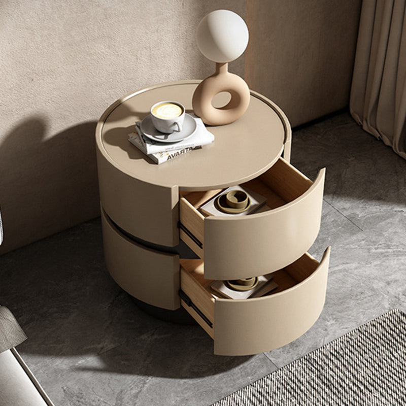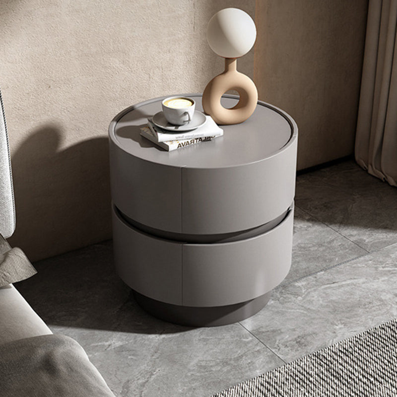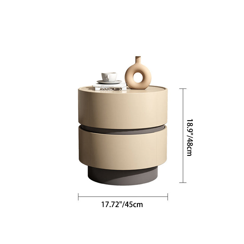 Modern Minimalist Cylinder Frame Solid Wood Nightstand 2-Drawer For Bedroom