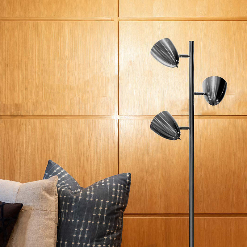 Modern Minimalist Cylinder Long Rod Iron 3-Light Standing Floor Lamp For Living Room