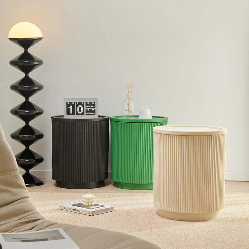 Modern Minimalist Cylinder PE Plastic Nightstand 2-Cabinet For Bedroom