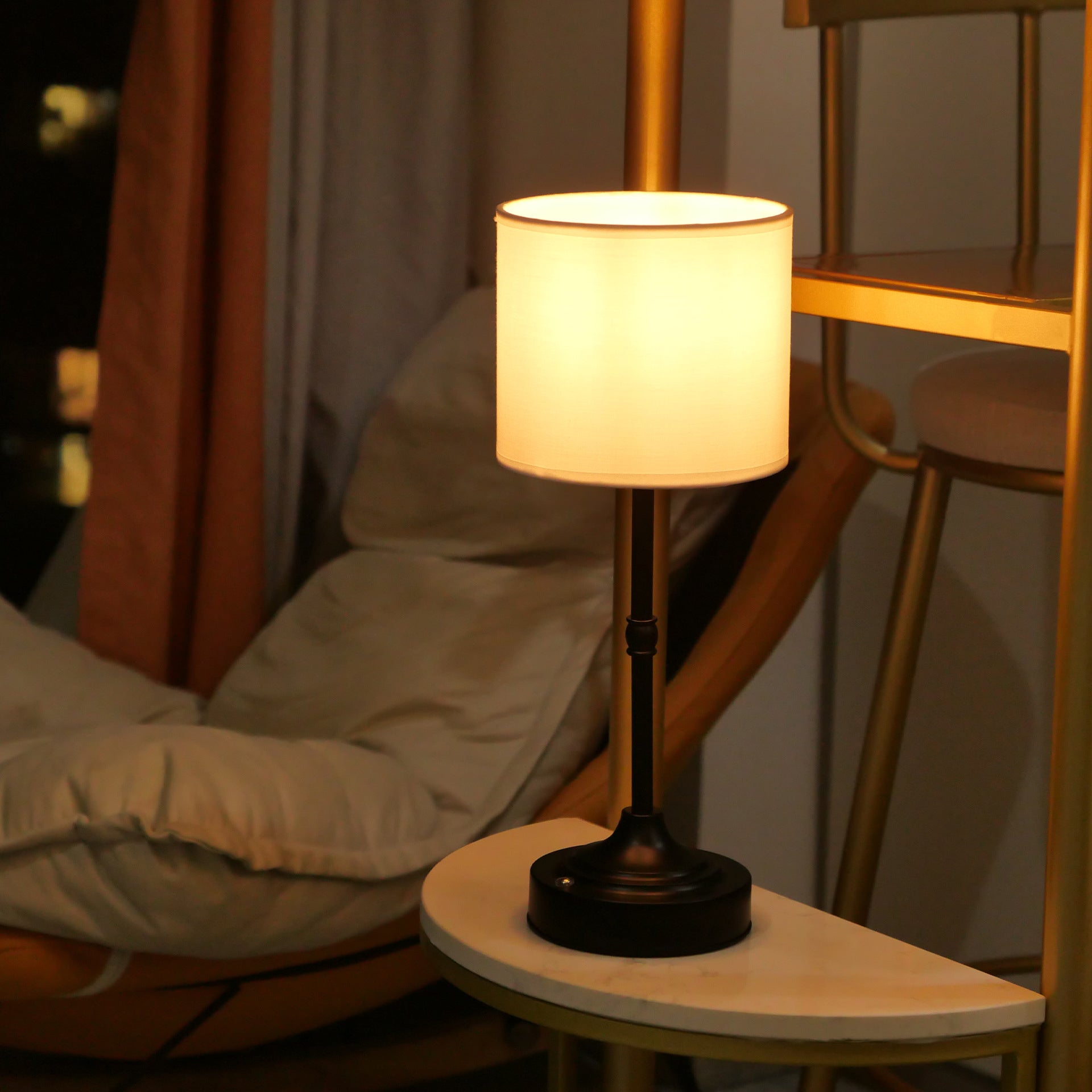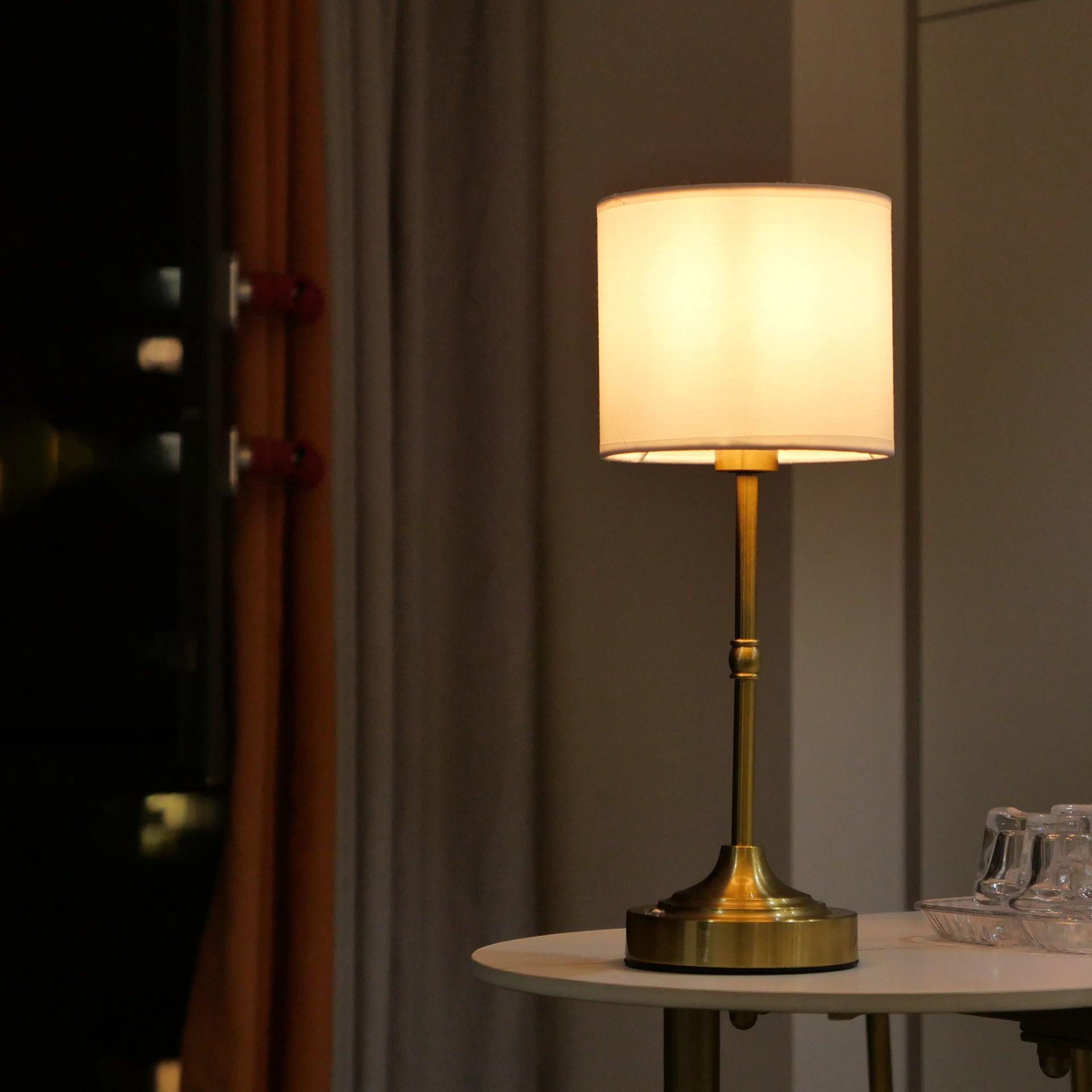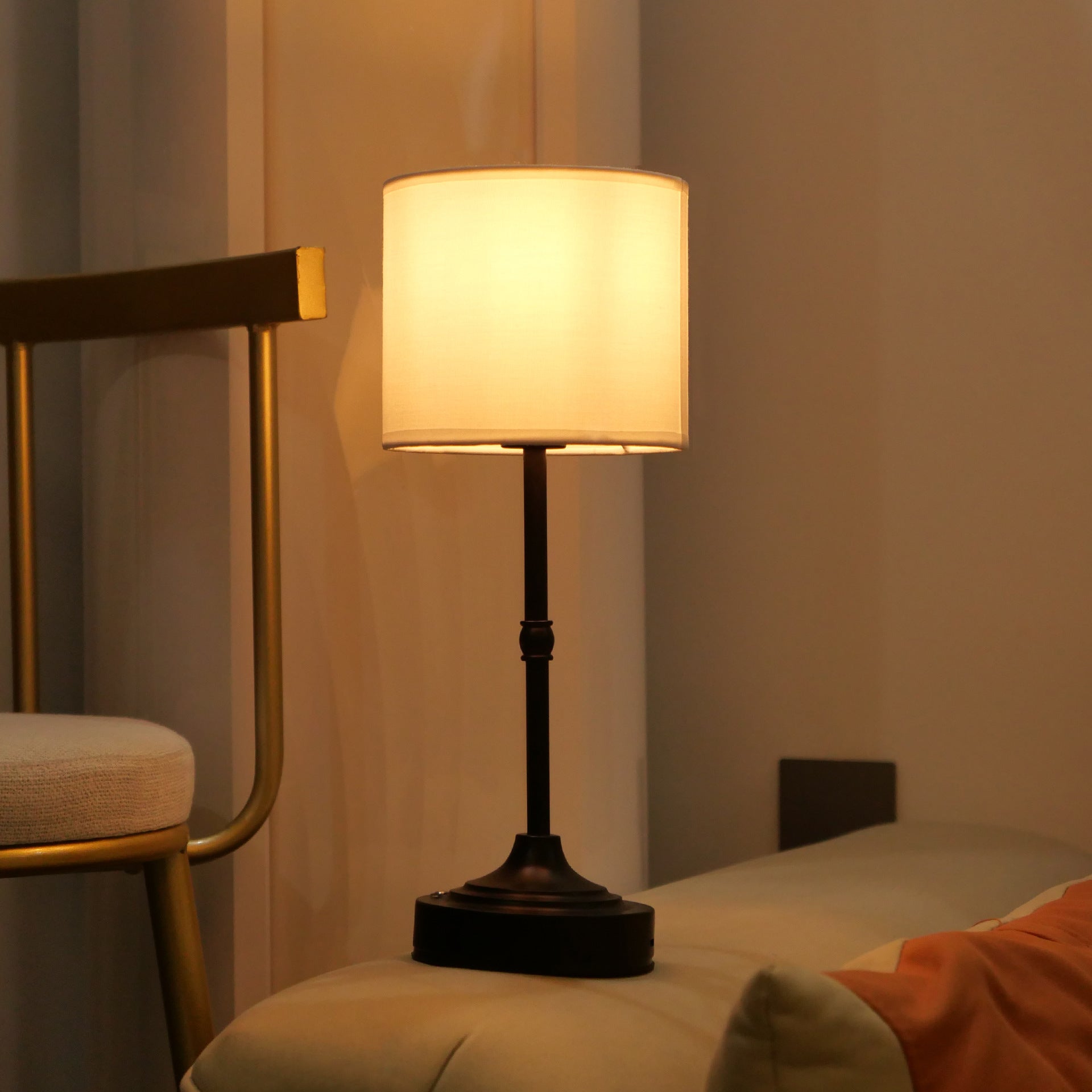 Modern Minimalist Cylinder Shape Fabric Iron 1-Light Table Lamp For Bedroom