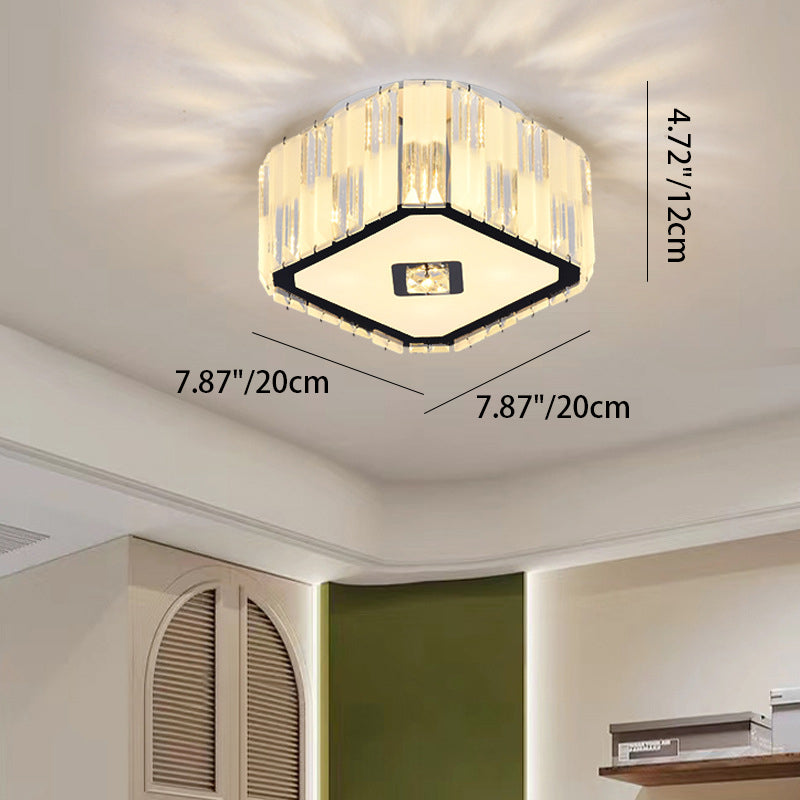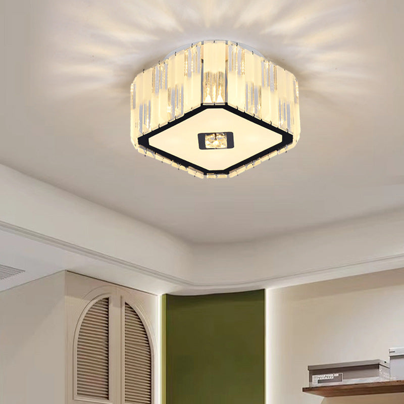 Modern Minimalist Cylinder Square Stainless Steel Acrylic 4-Light Flush Mount Ceiling Light For Living Room