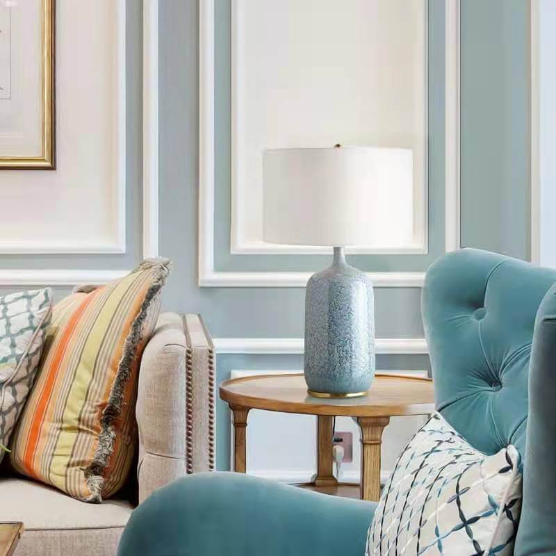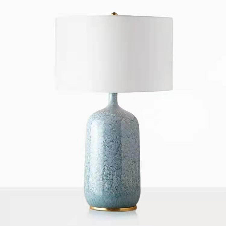 Modern Minimalist Cylindrical Ceramic Fabric 1-Light Table Lamp