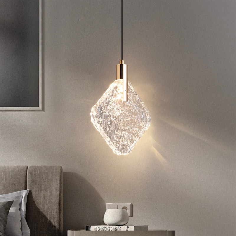 Modern Minimalist Diamond Round Trapezoid Aluminum Crystal LED Pendant Light For Bedroom