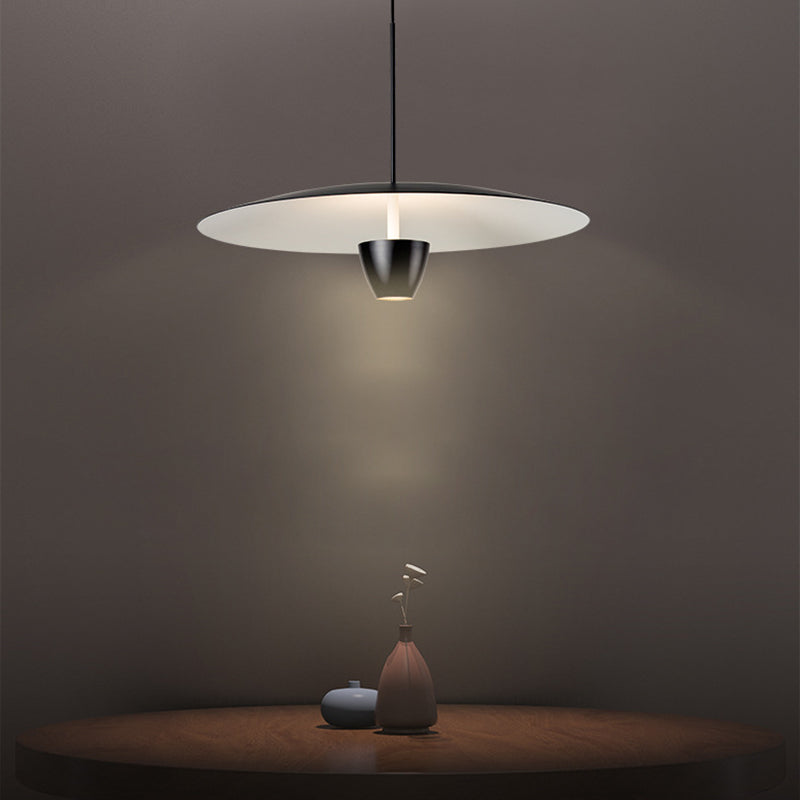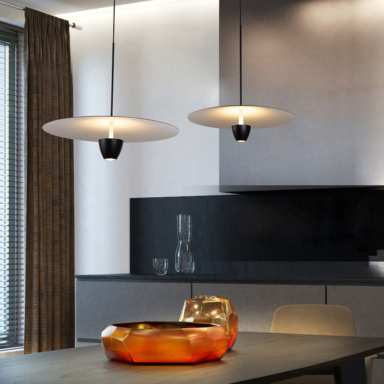 Modern Minimalist Disc Half Round Cylinder Base Iron LED Pendant Light For Living Room