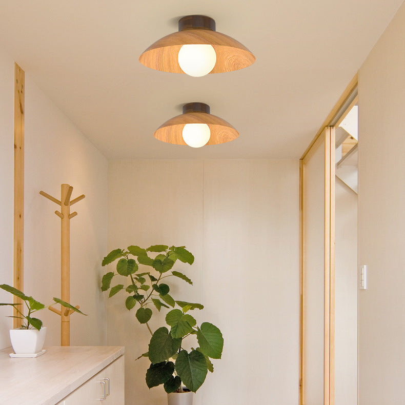 Modern Minimalist Disc Round Glass Wood Iron 1-Light Semi-Flush Mount Ceiling Light For Living Room