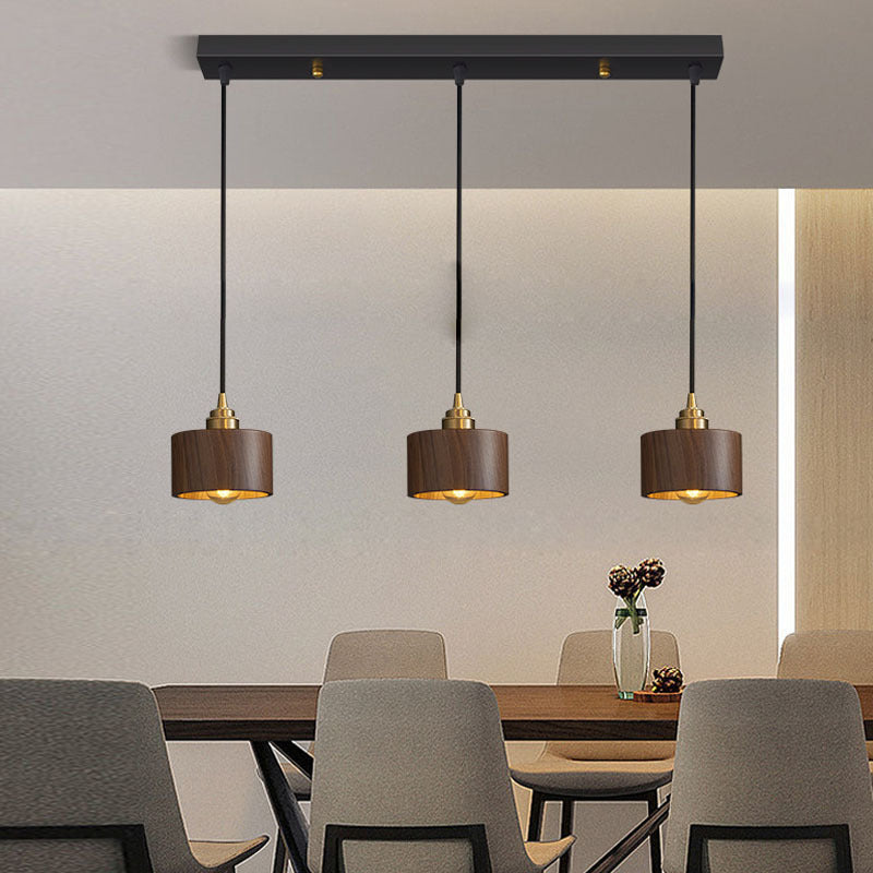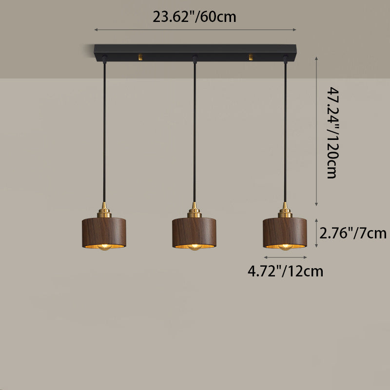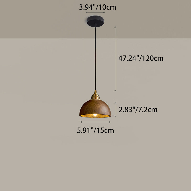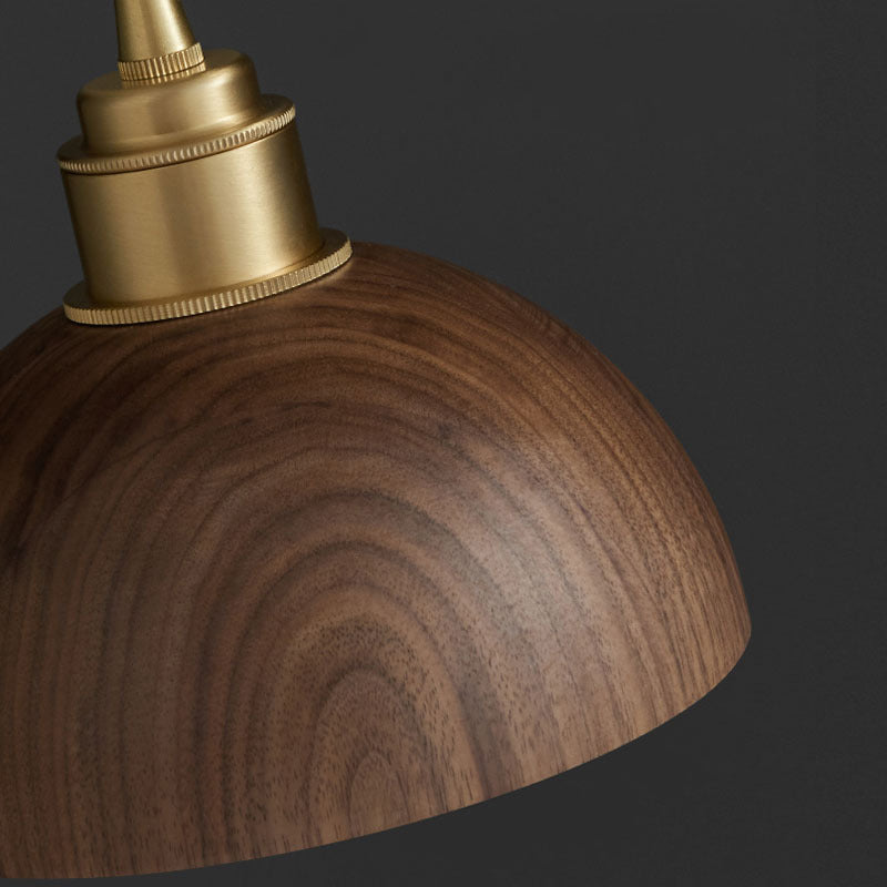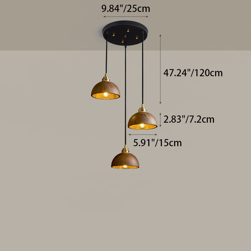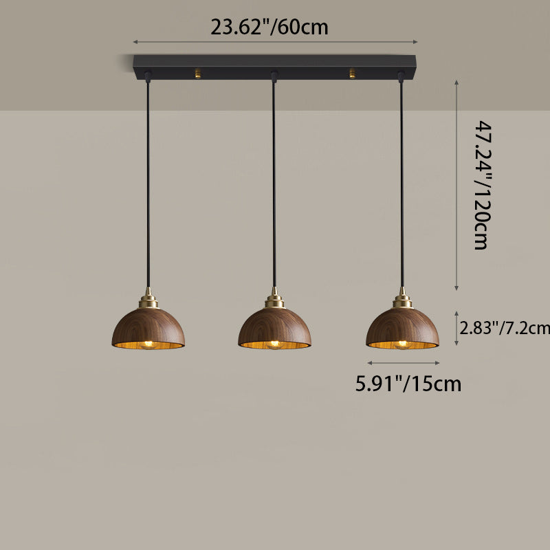 Modern Minimalist Dome Half Round Cylinder Walnut Wood Shade Copper Iron 1/3 Light Island Light Chandelier For Dining Room