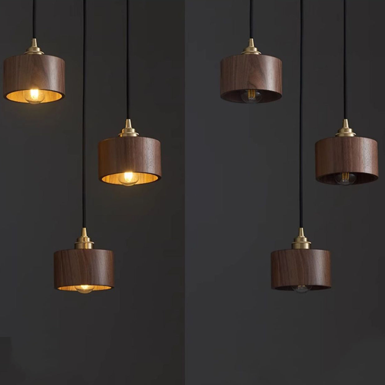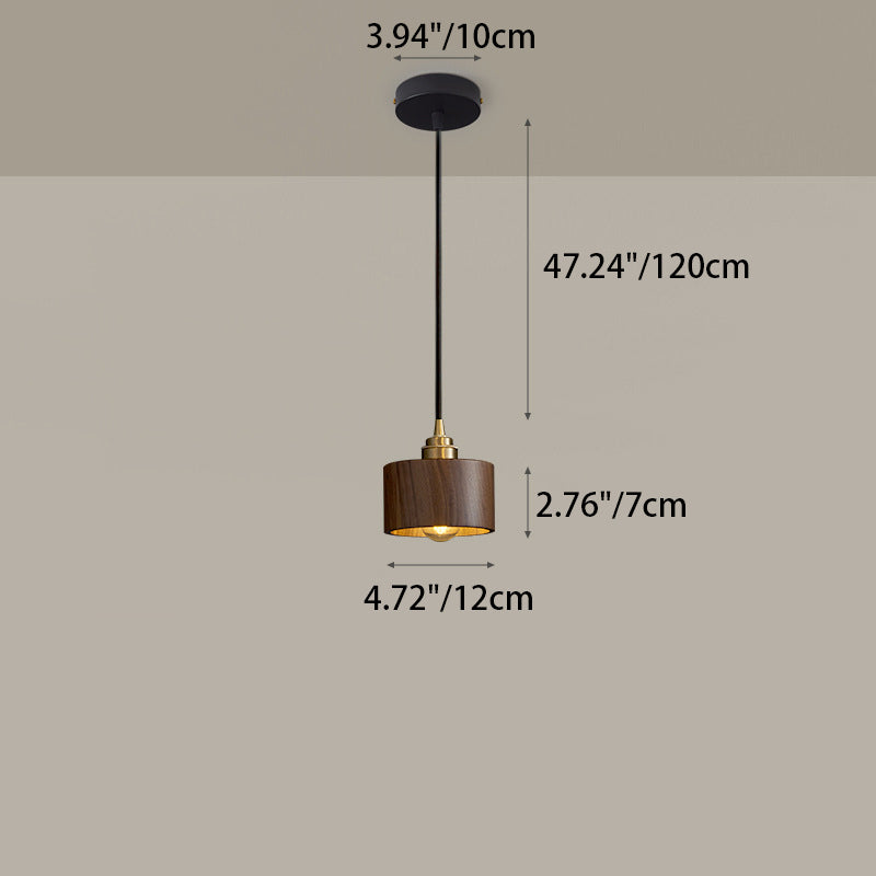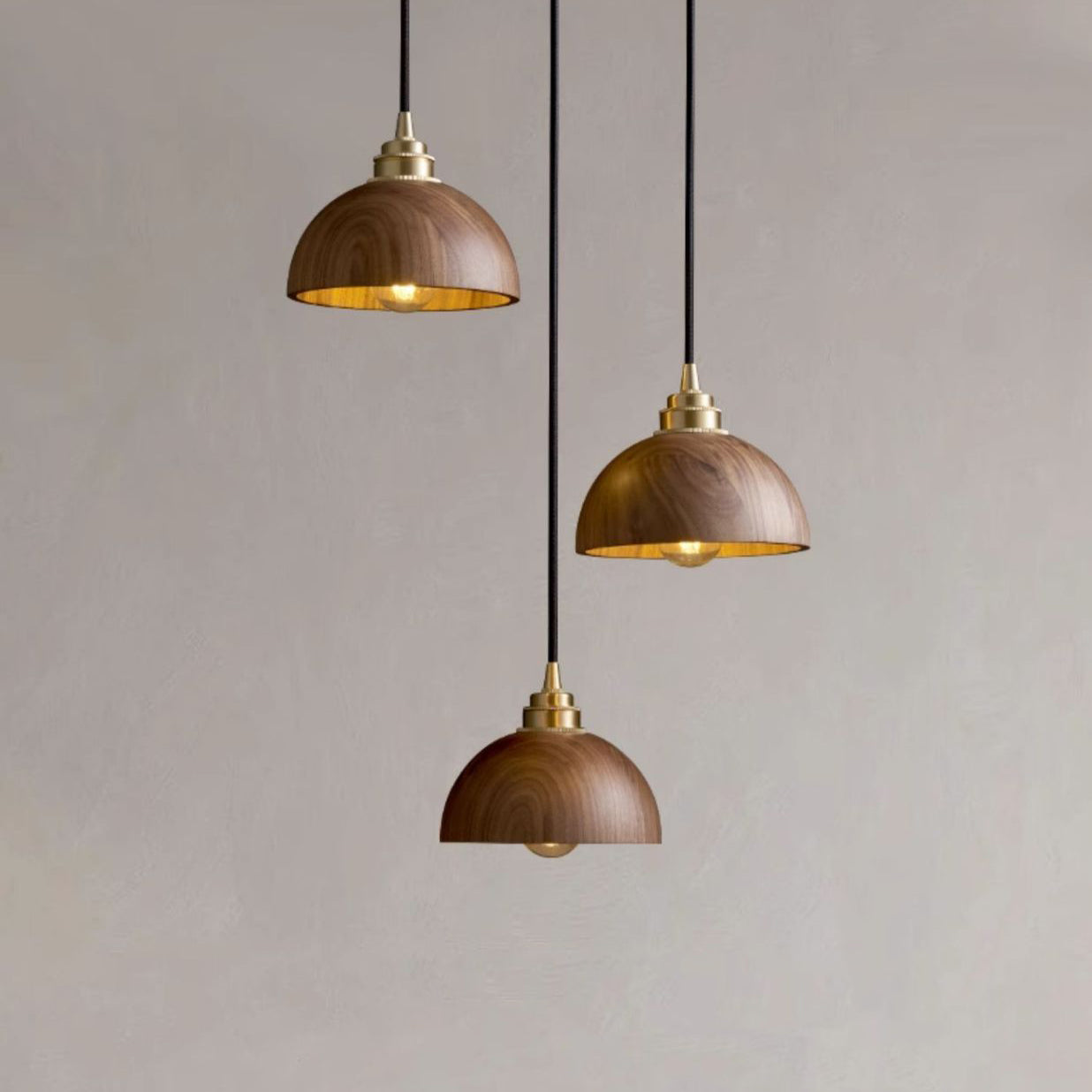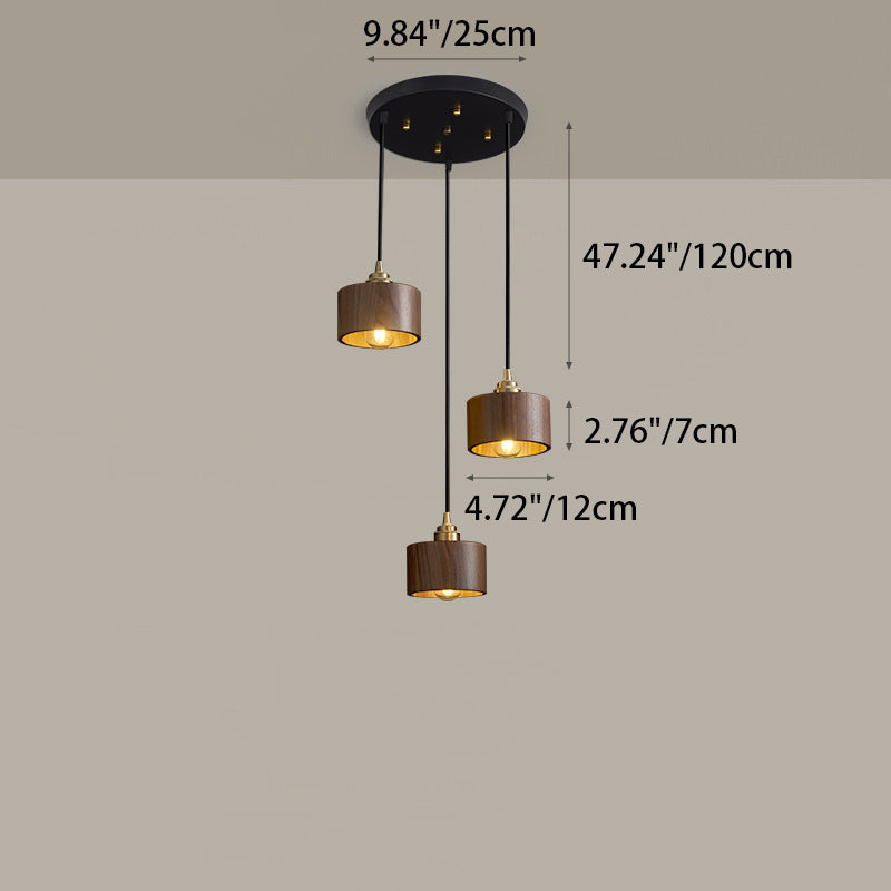 Modern Minimalist Dome Half Round Cylinder Walnut Wood Shade Copper Iron 1/3 Light Island Light Chandelier For Dining Room