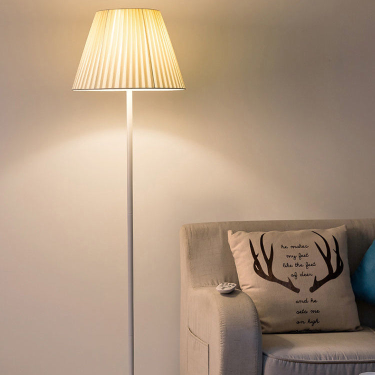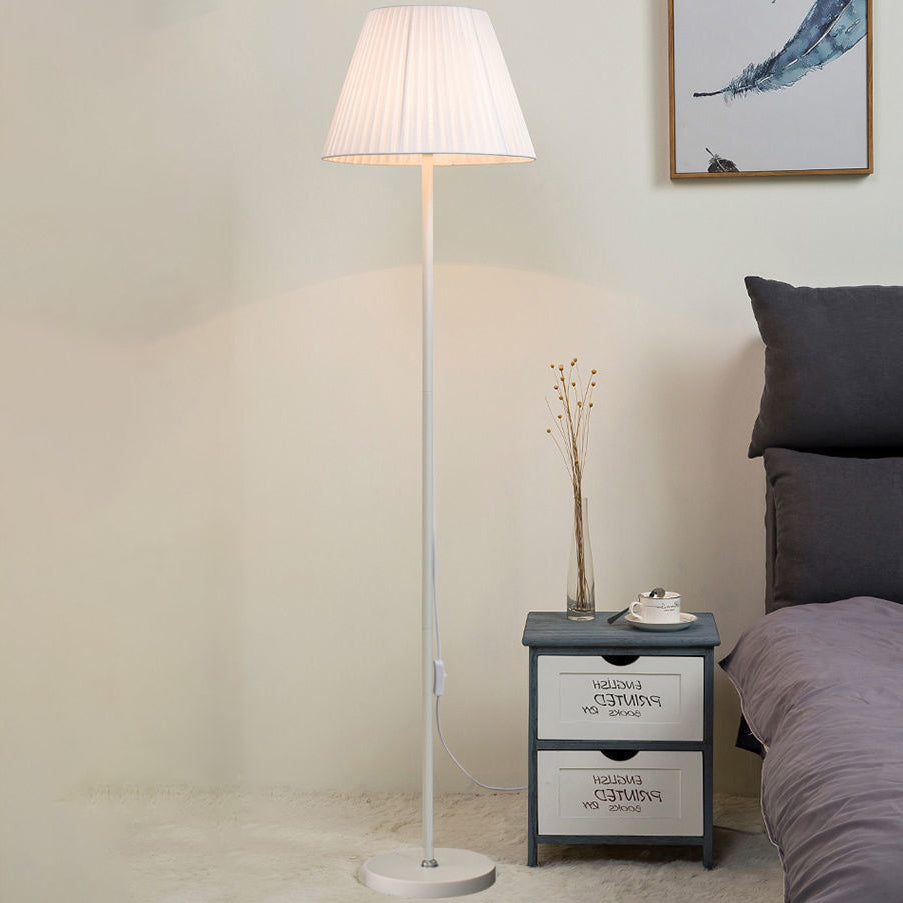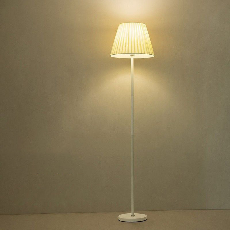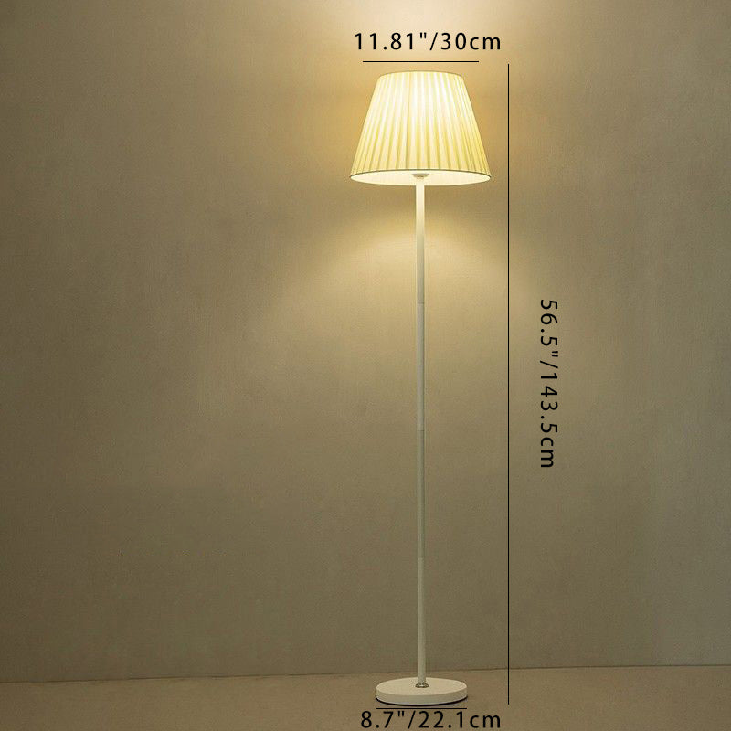 Modern Minimalist Drum Pleated Shape Iron Fabric 1-Light Standing Floor Lamp For Bedroom