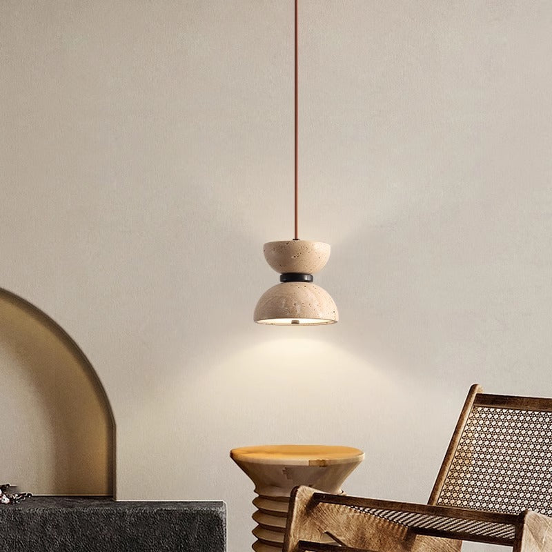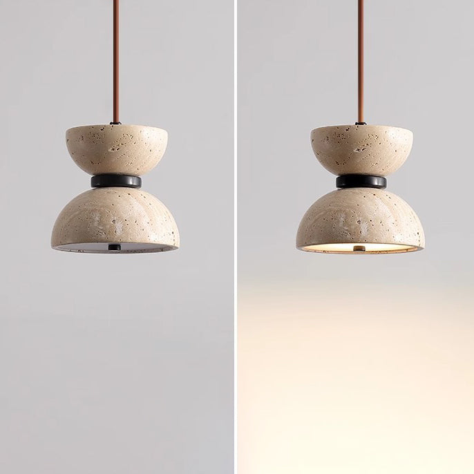 Modern Minimalist Dumbbell Stone Wood LED Pendant Light For Bedroom