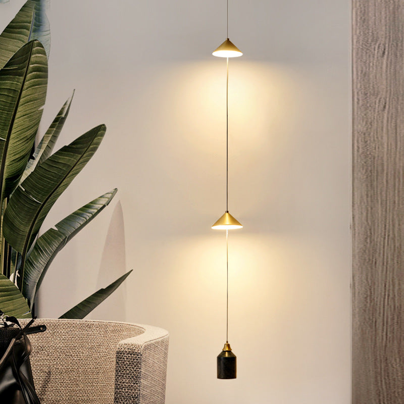 Modern Minimalist Electroplated Marble Strips Iron LED Chandelier For Living Room