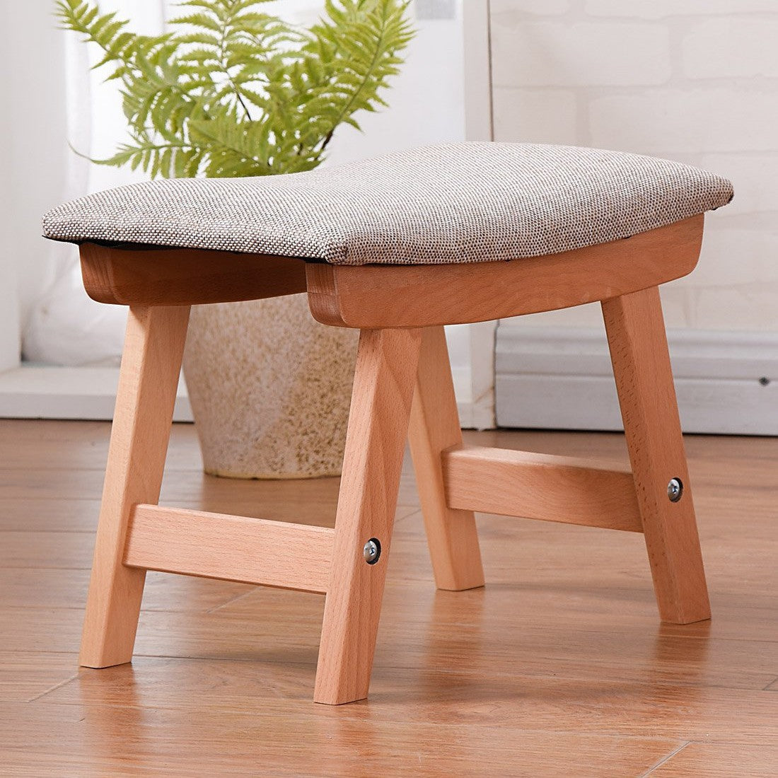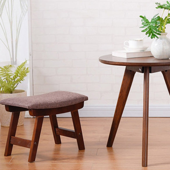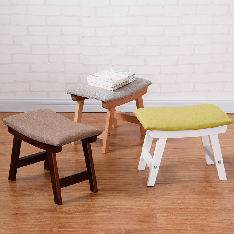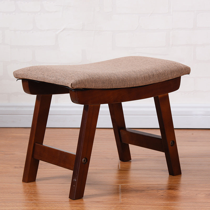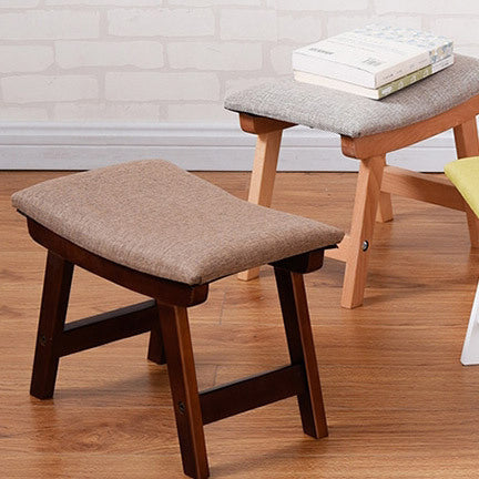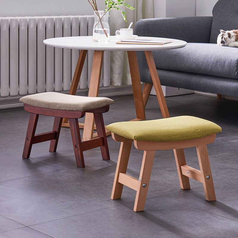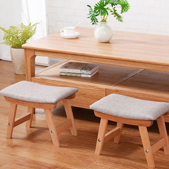 Modern Minimalist Fabric & Solid Wood Rectangular Curved Low Stool For Bedroom & Living Room
