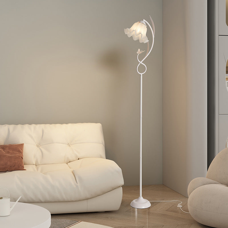 Modern Minimalist Floral Iron Acrylic 1-Light Standing Floor Lamp For Living Room