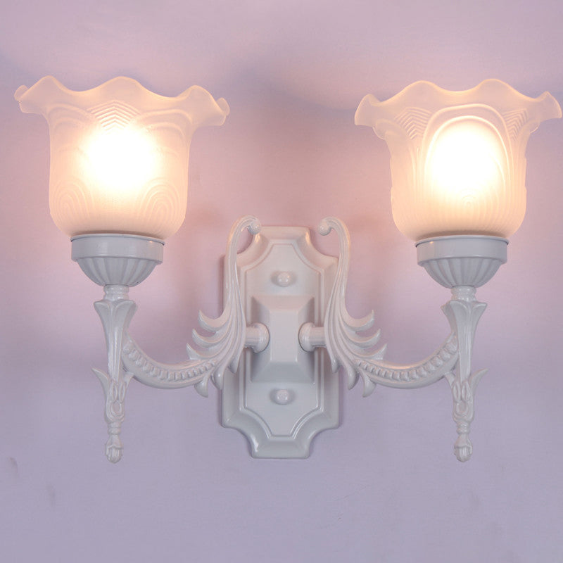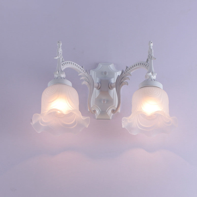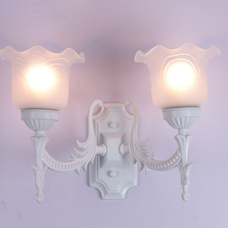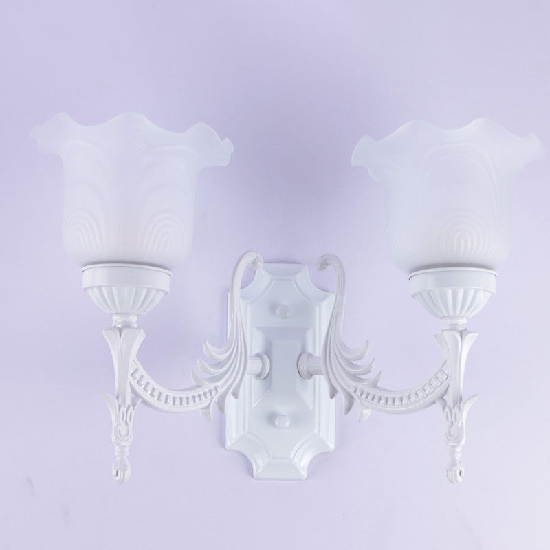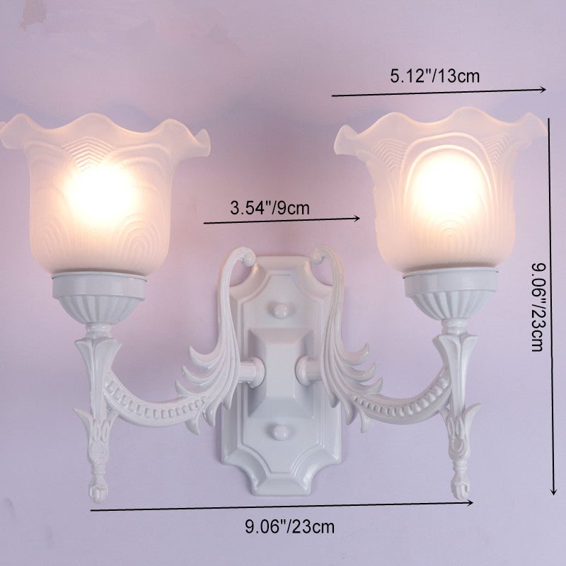 Modern Minimalist Floral Round Glass Iron 2-Light Wall Sconce Lamp For Living Room