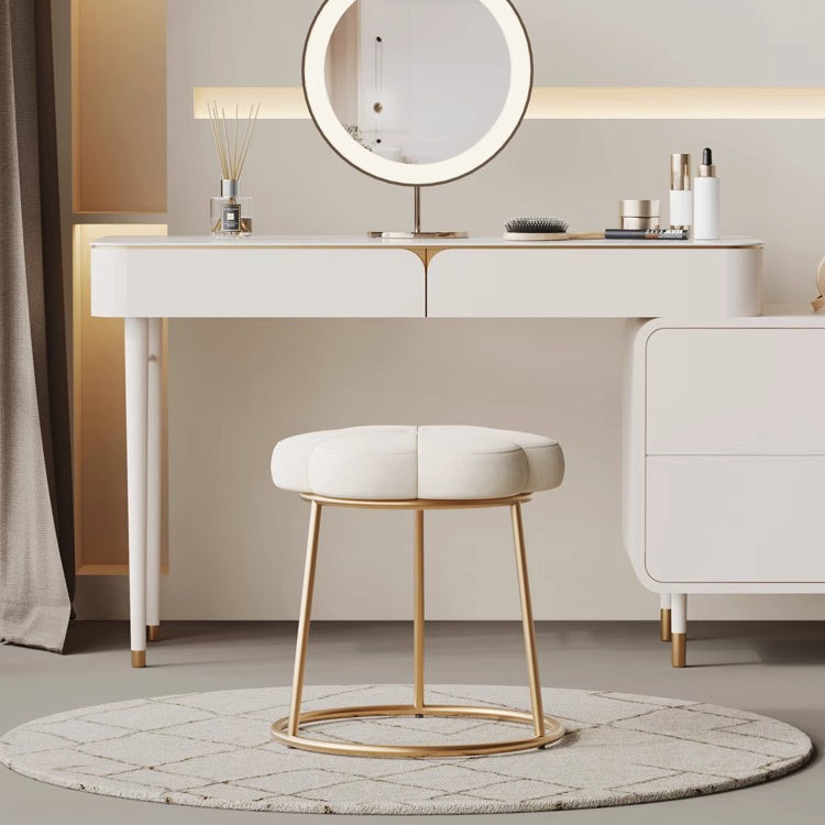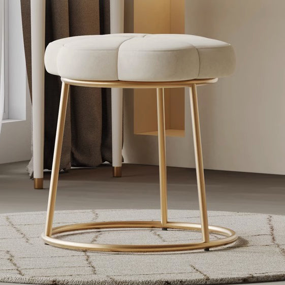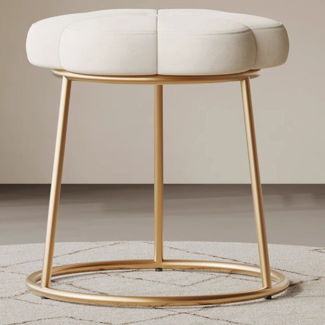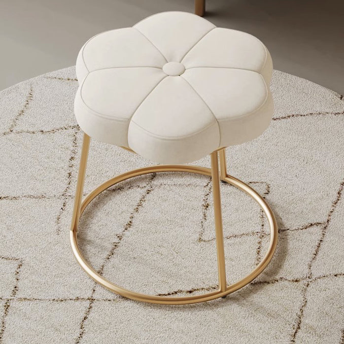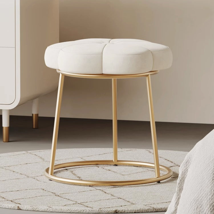Modern Minimalist Floral Velvet Steel Frame Vanity Stool For Bedroom