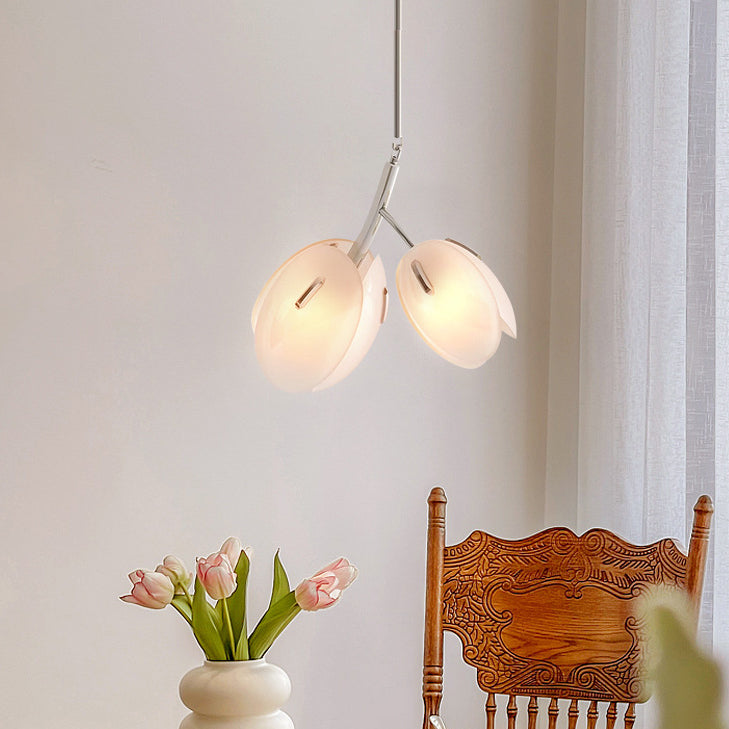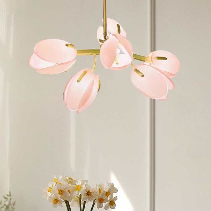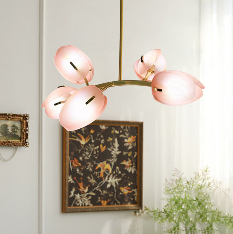 Modern Minimalist Flower Bud Iron Glass 1/2/3/4/5/6 Light Island Light Chandelier For Dining Room
