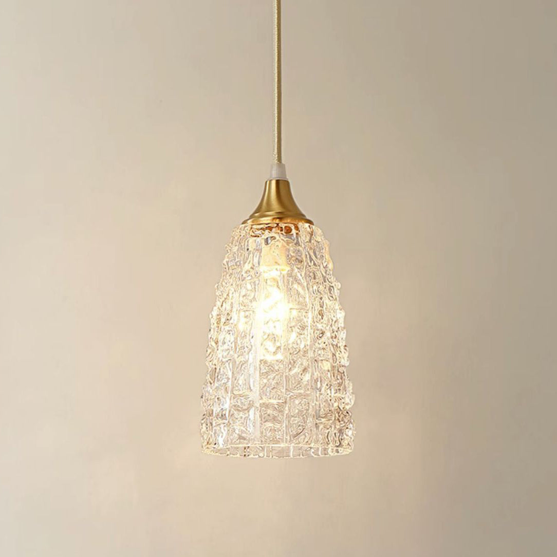 Modern Minimalist Flower Cup Shape Brass Glass 1-Light Pendant Light For Bedroom