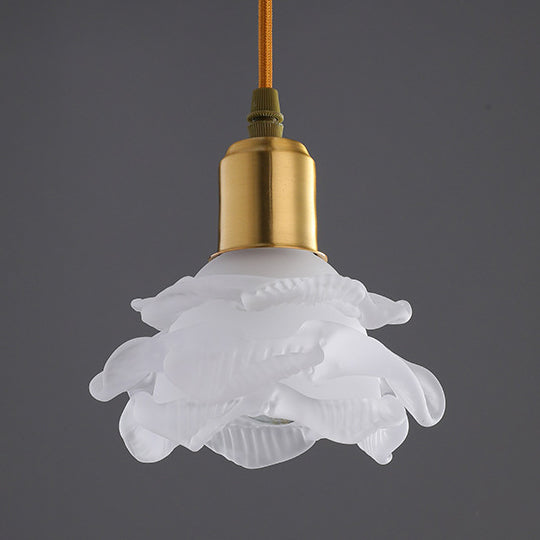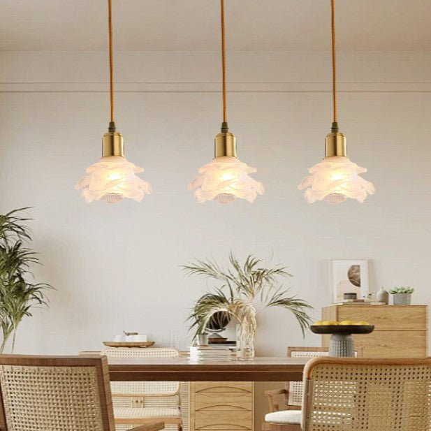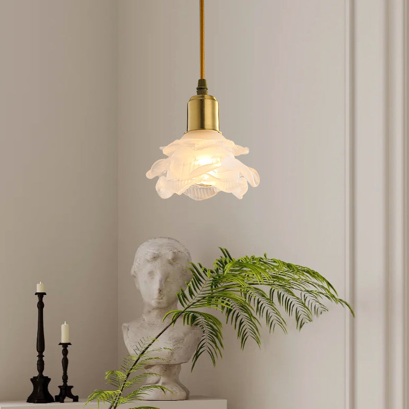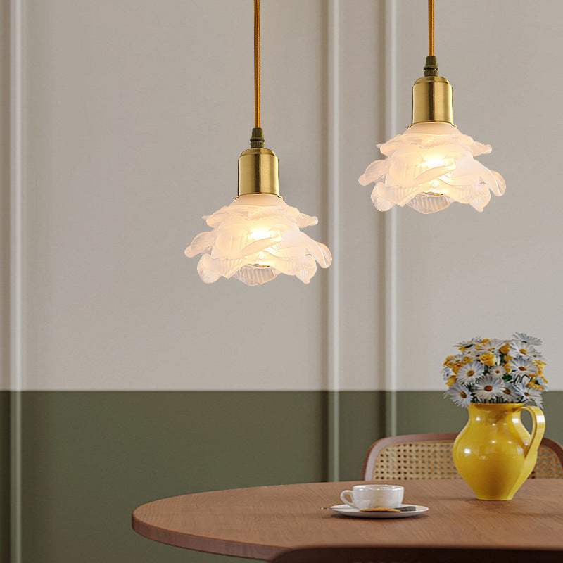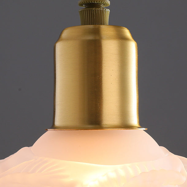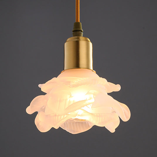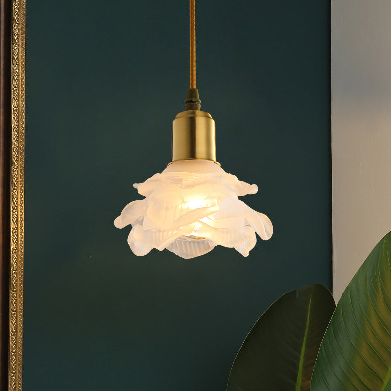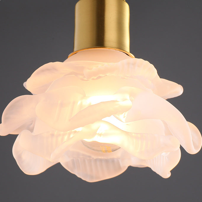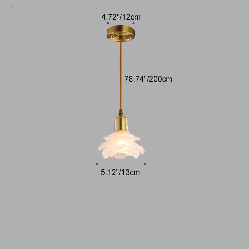 Modern Minimalist Flower Full Copper Frame Glass Shade 1-Light Pendant Light For Living Room