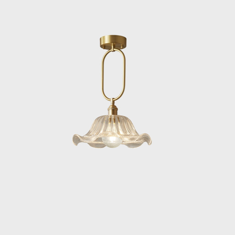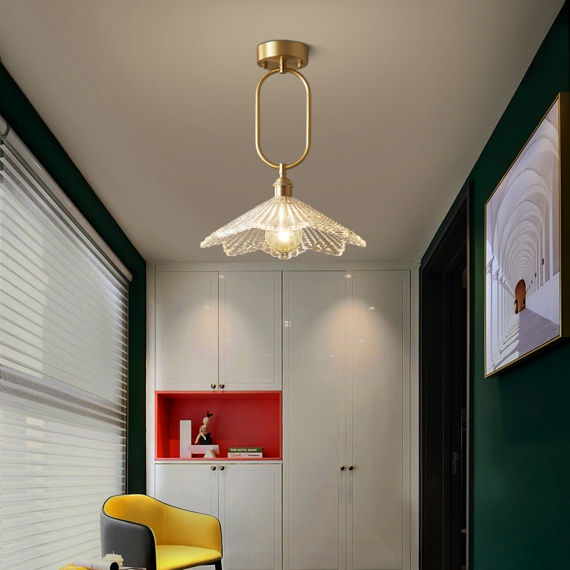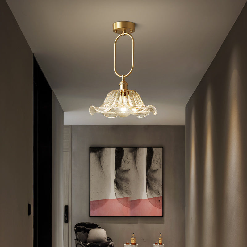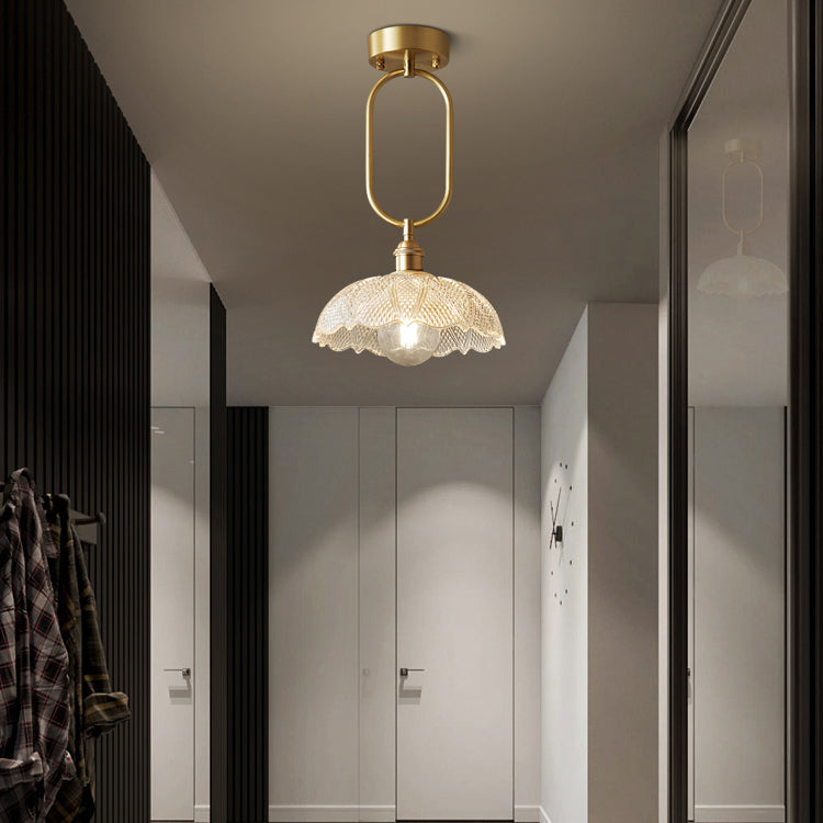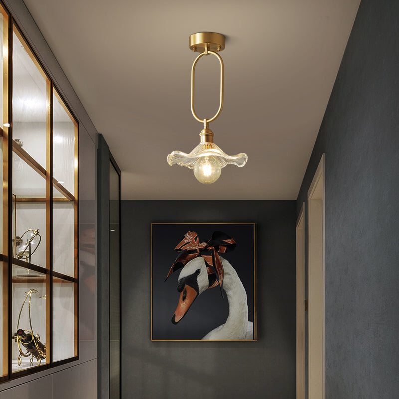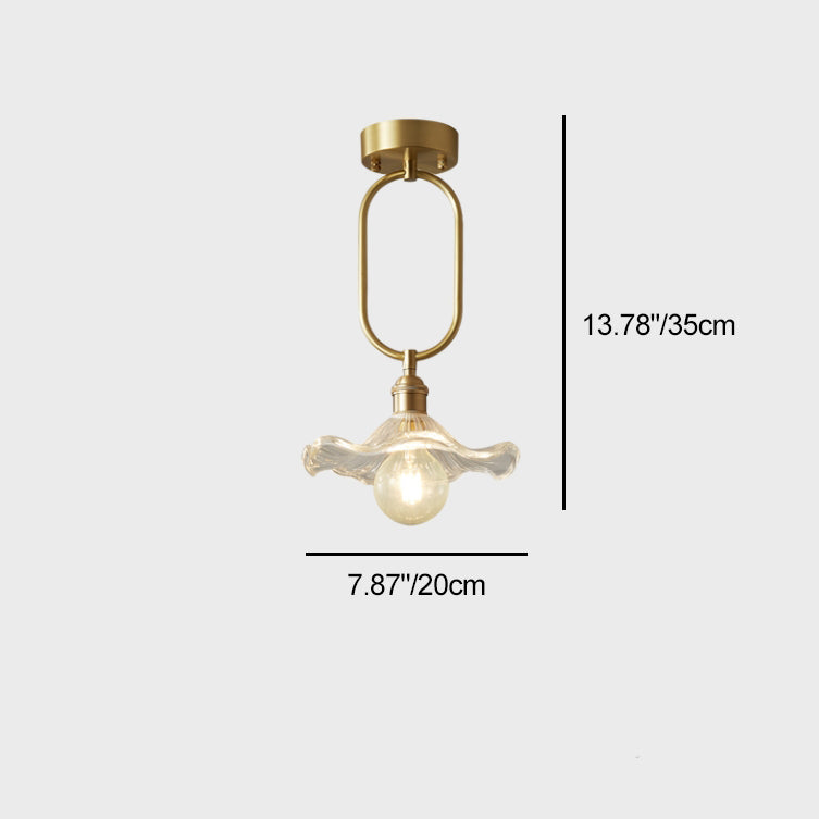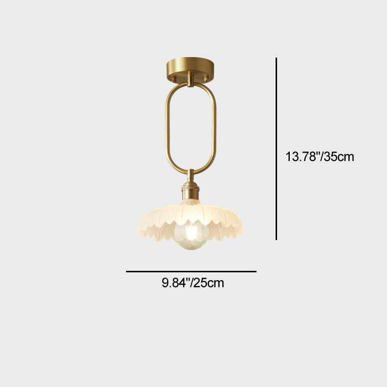 Modern Minimalist Flower Iron Glass 1-Light Semi-Flush Mount Ceiling Light For Hallway
