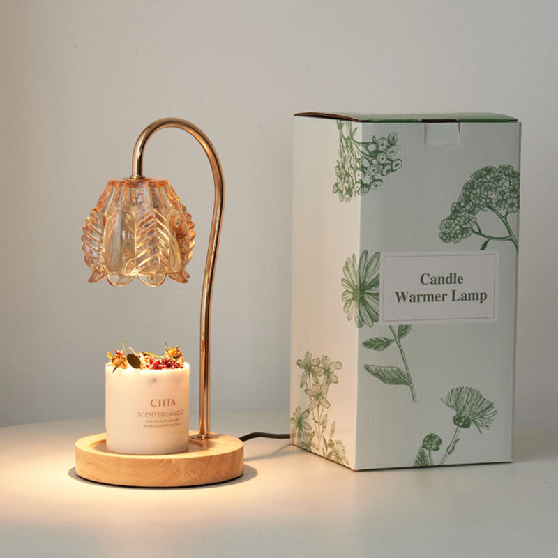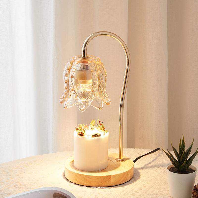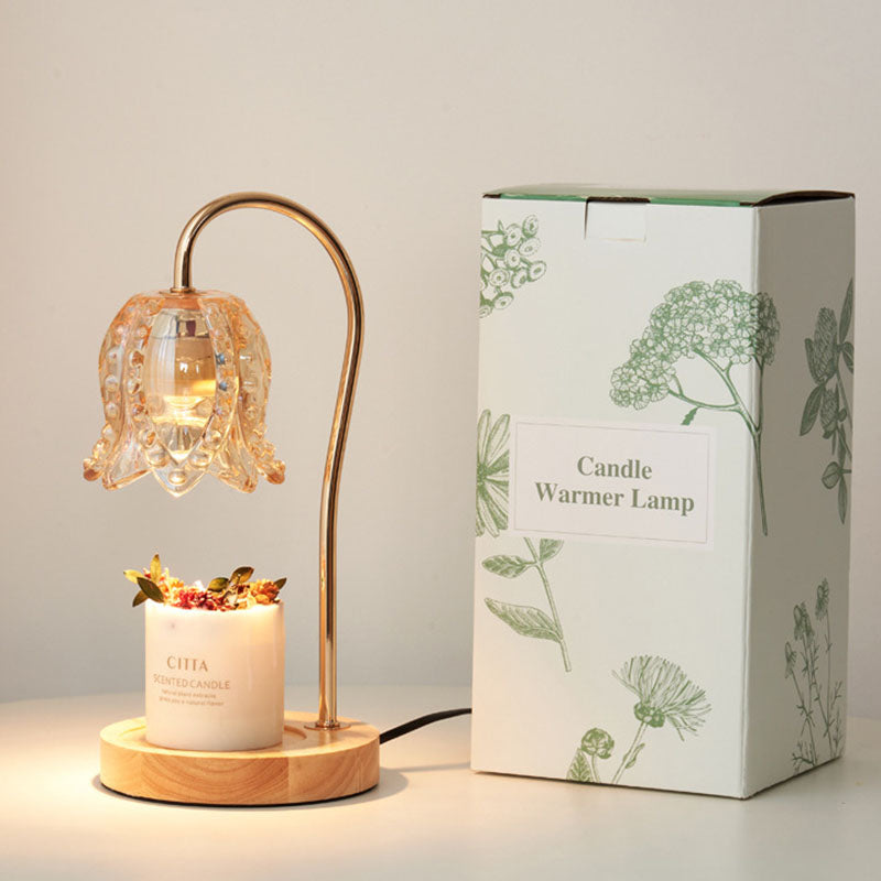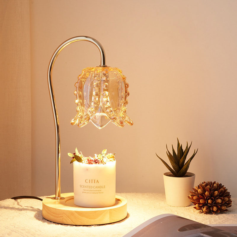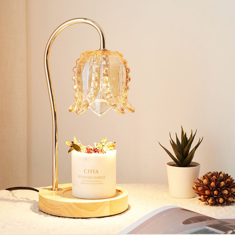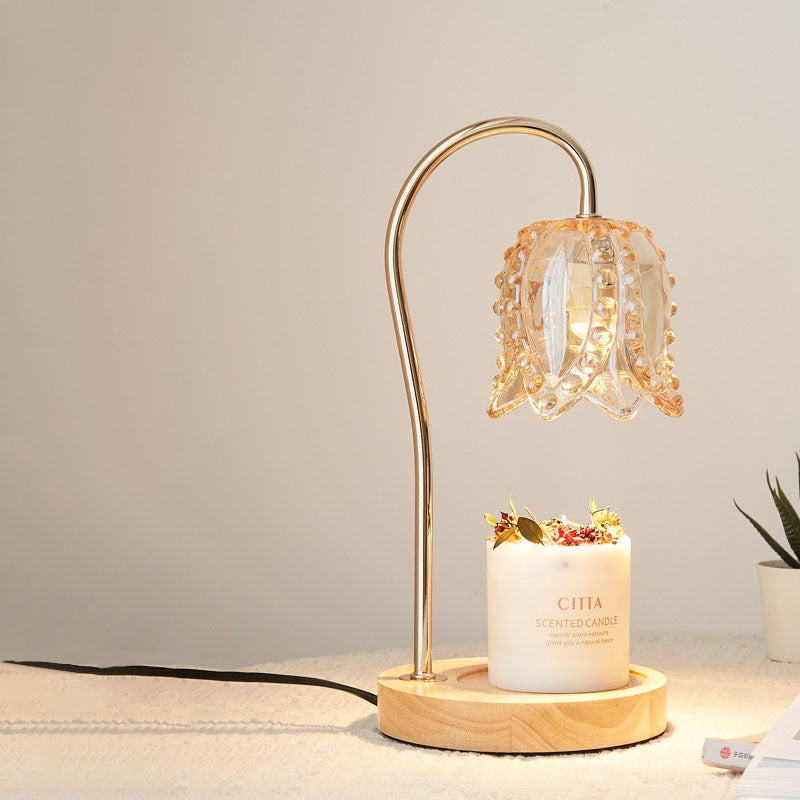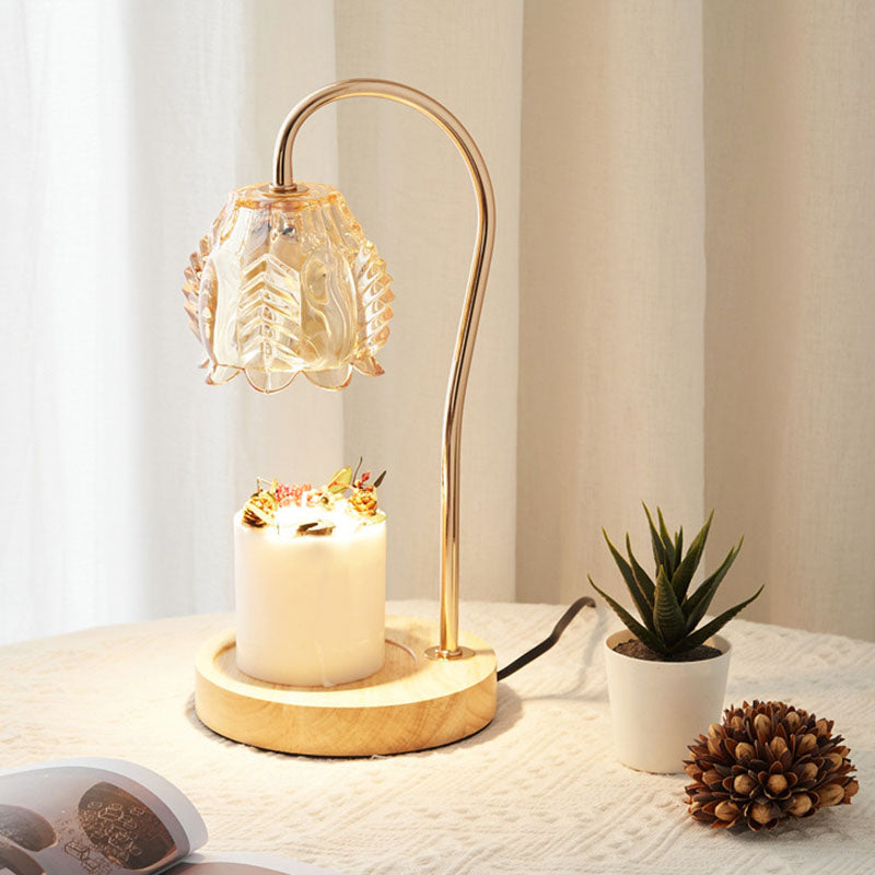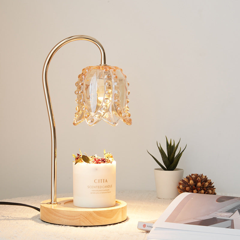 Modern Minimalist Flower Wood Iron Glass 1-Light Aroma Melt Wax Table Lamp For Bedroom