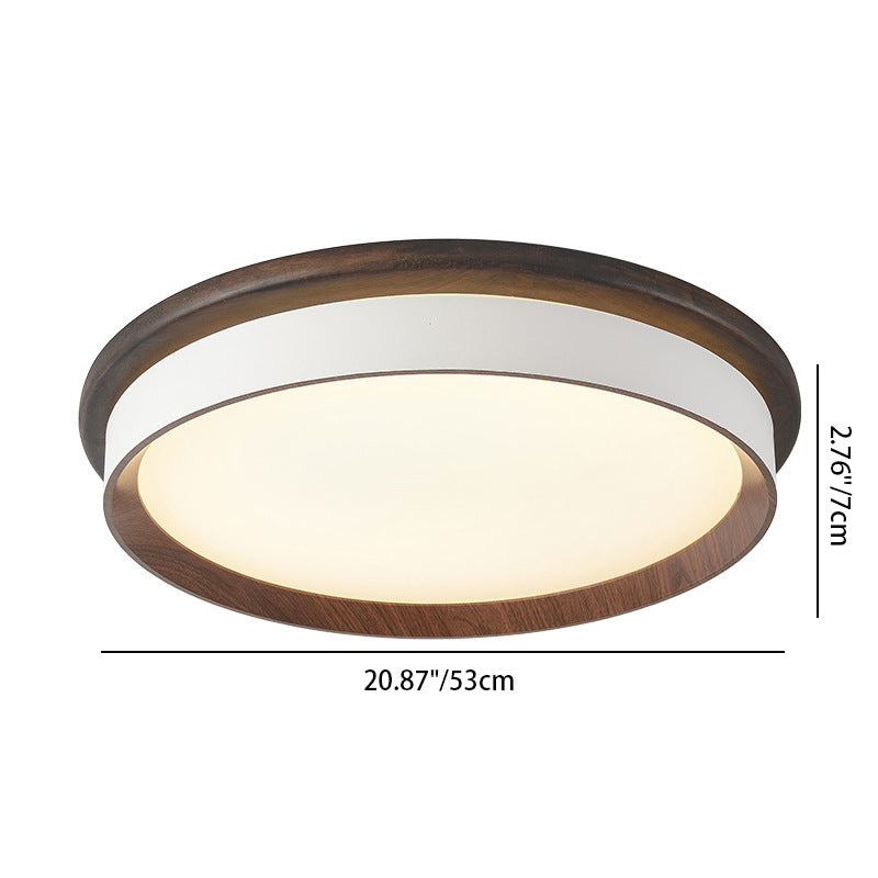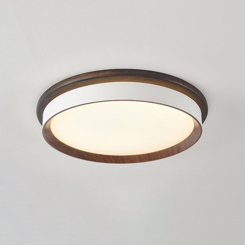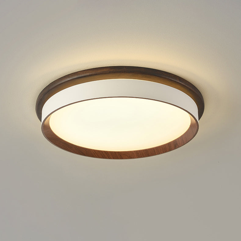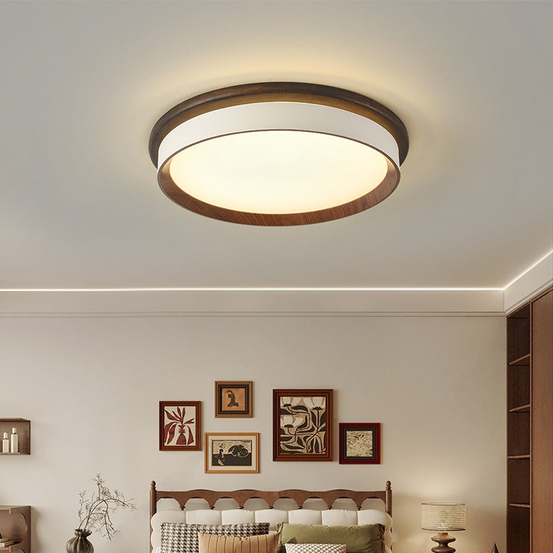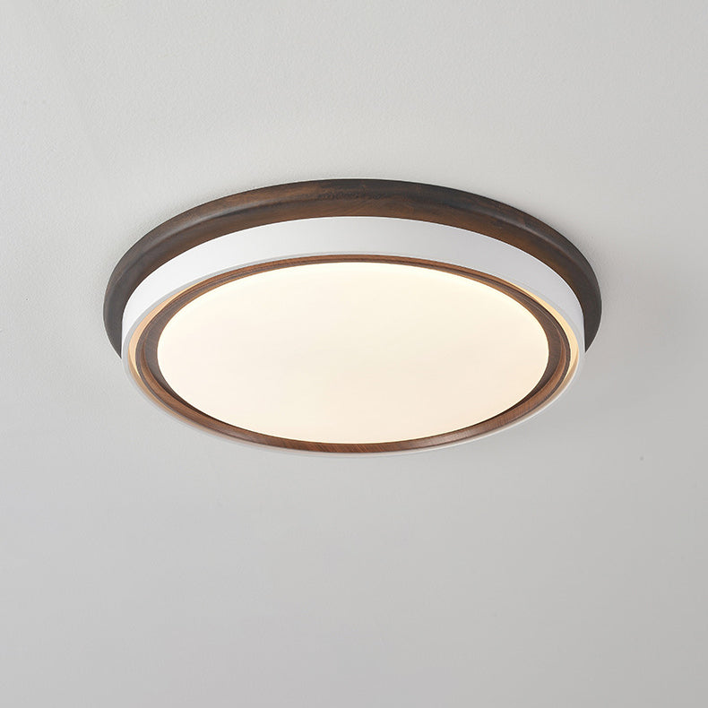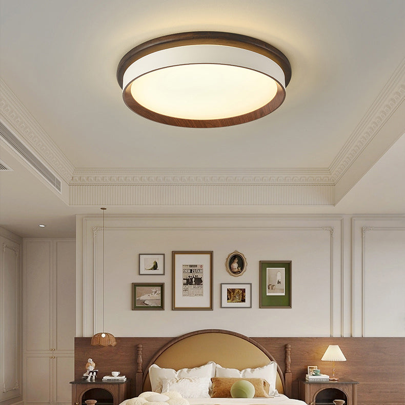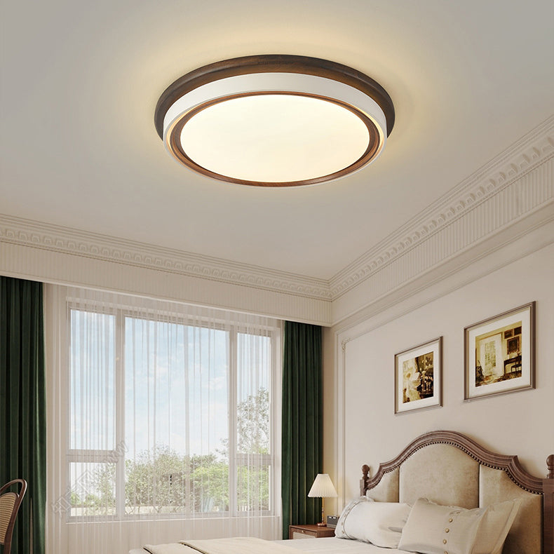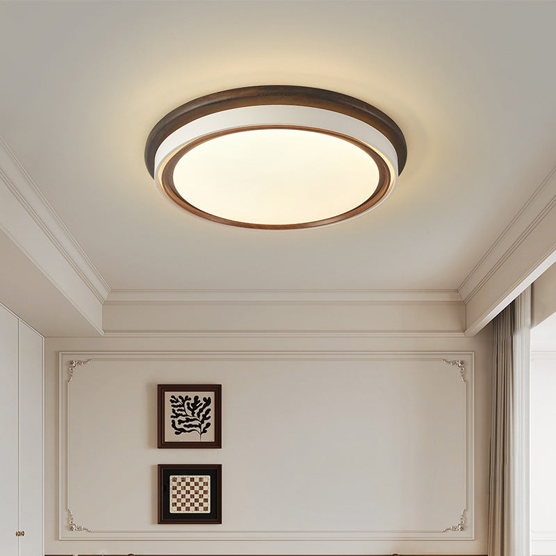 Modern Minimalist Geometric Round Acrylic Wood Grain LED Flush Mount Ceiling Light For Bedroom