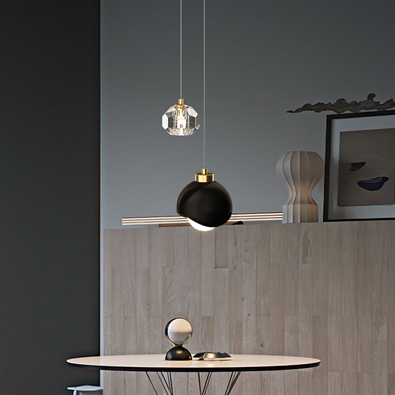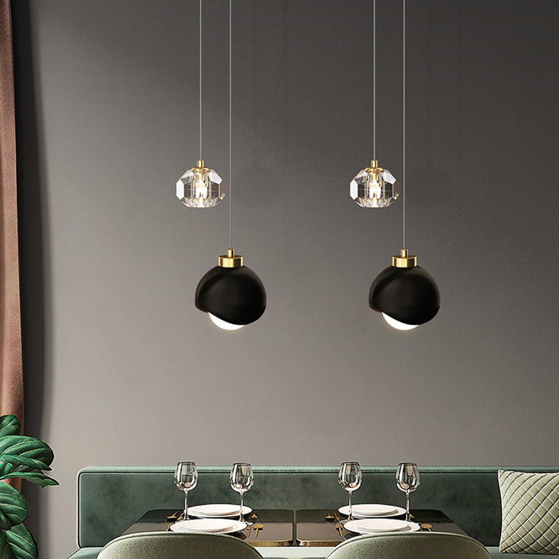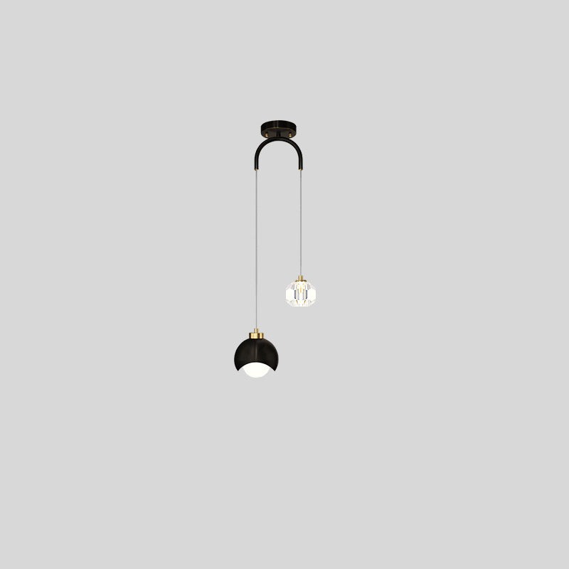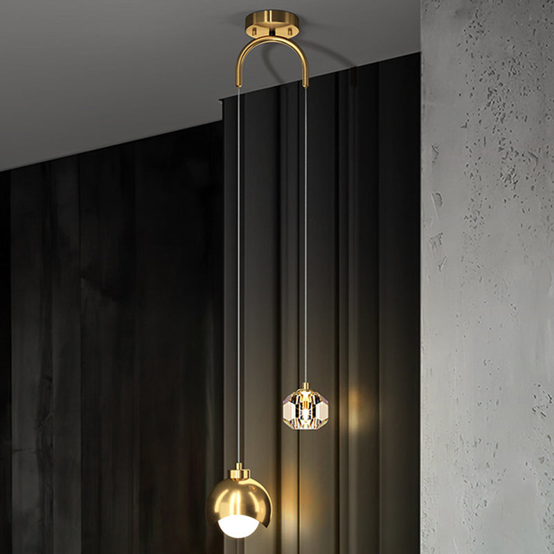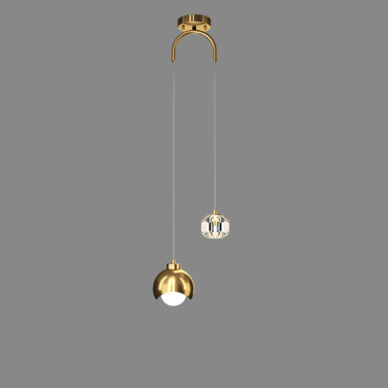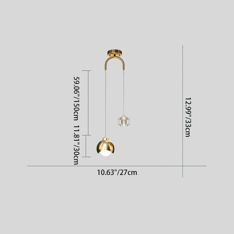 Modern Minimalist Globe Brass Crystal 2-Light Pendant Light For Bedroom