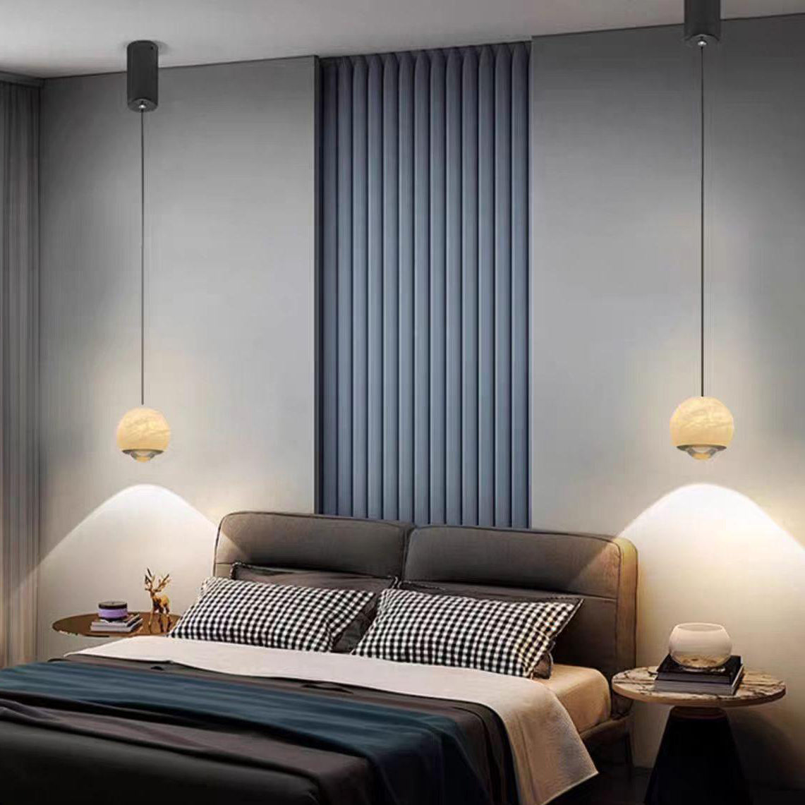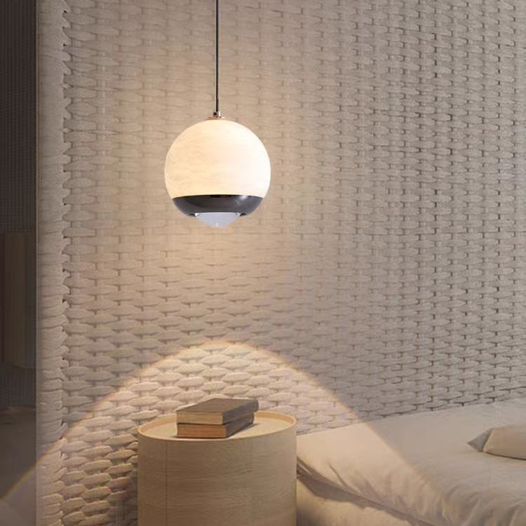 Modern Minimalist Globe Marble Aluminum LED Pendant Light For Bedroom