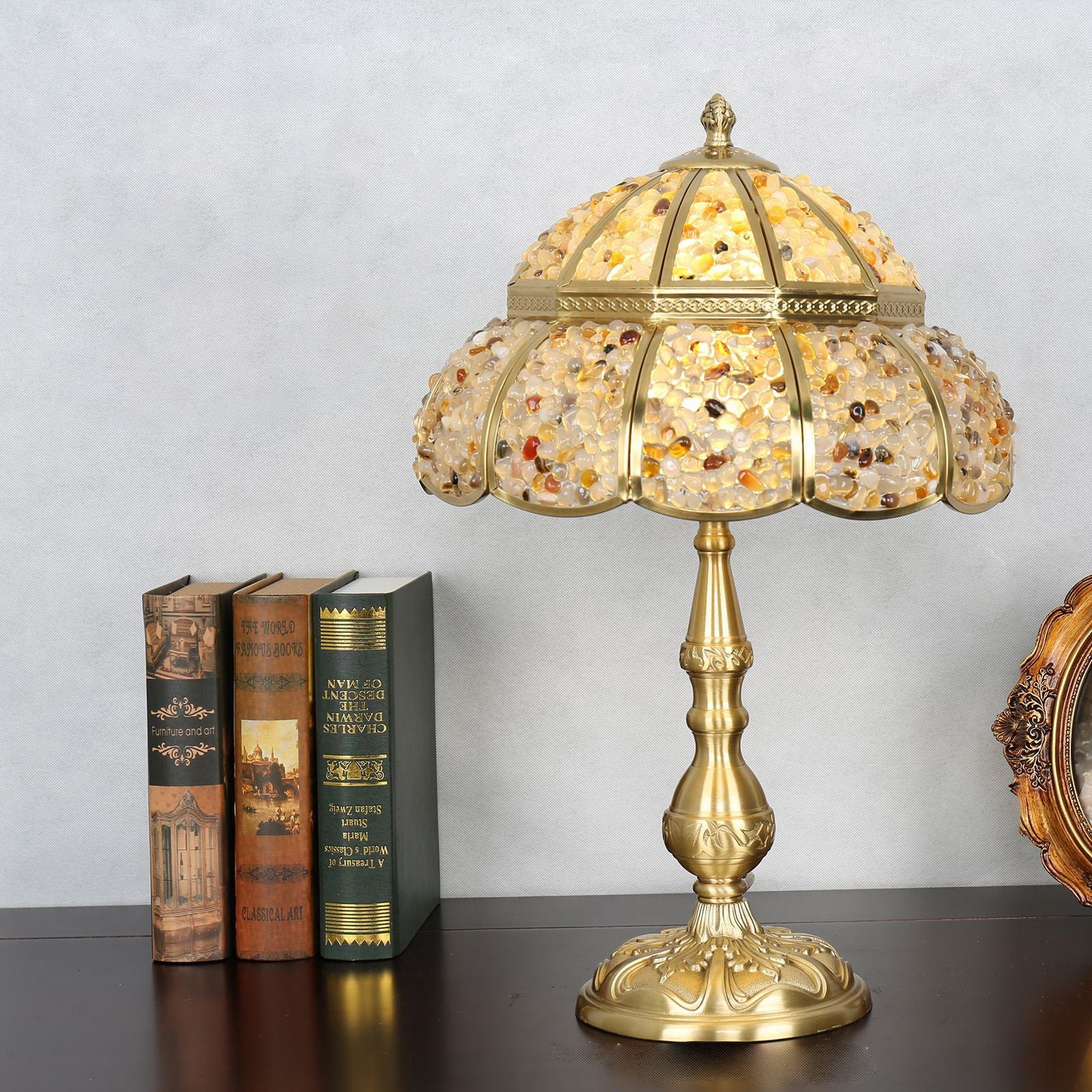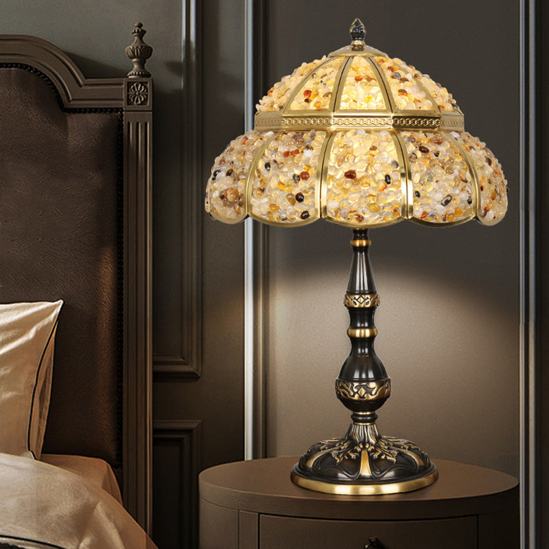 Modern Minimalist Half Round Oval Disc Base Copper Crystal 1-Light Table Lamp For Bedroom