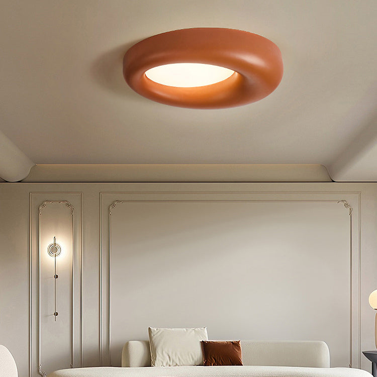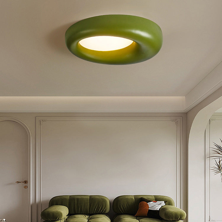 Modern Minimalist Hollow Round Acrylic Fiberglass LED Flush Mount Ceiling Light For Living Room