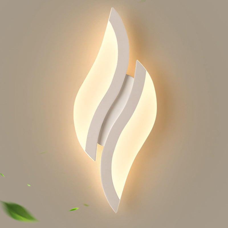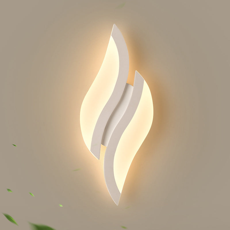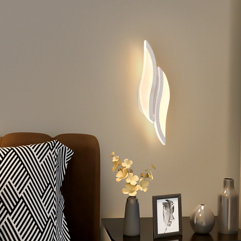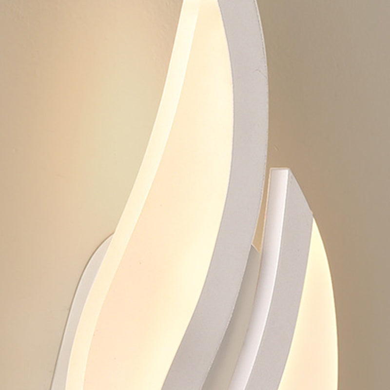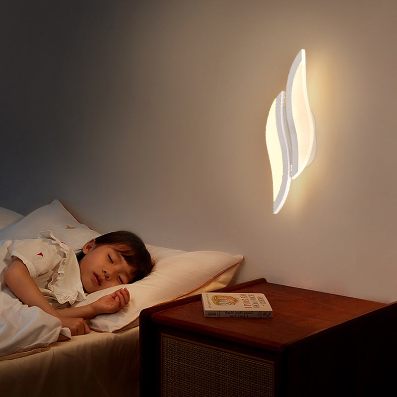 This modern minimalist LED wall sconce features a unique leaf-shaped design crafted from durable iron and acrylic in a clean white finish. Ideal for bedrooms and living rooms, it adds decorative charm and soft ambient lighting to any contemporary interior.